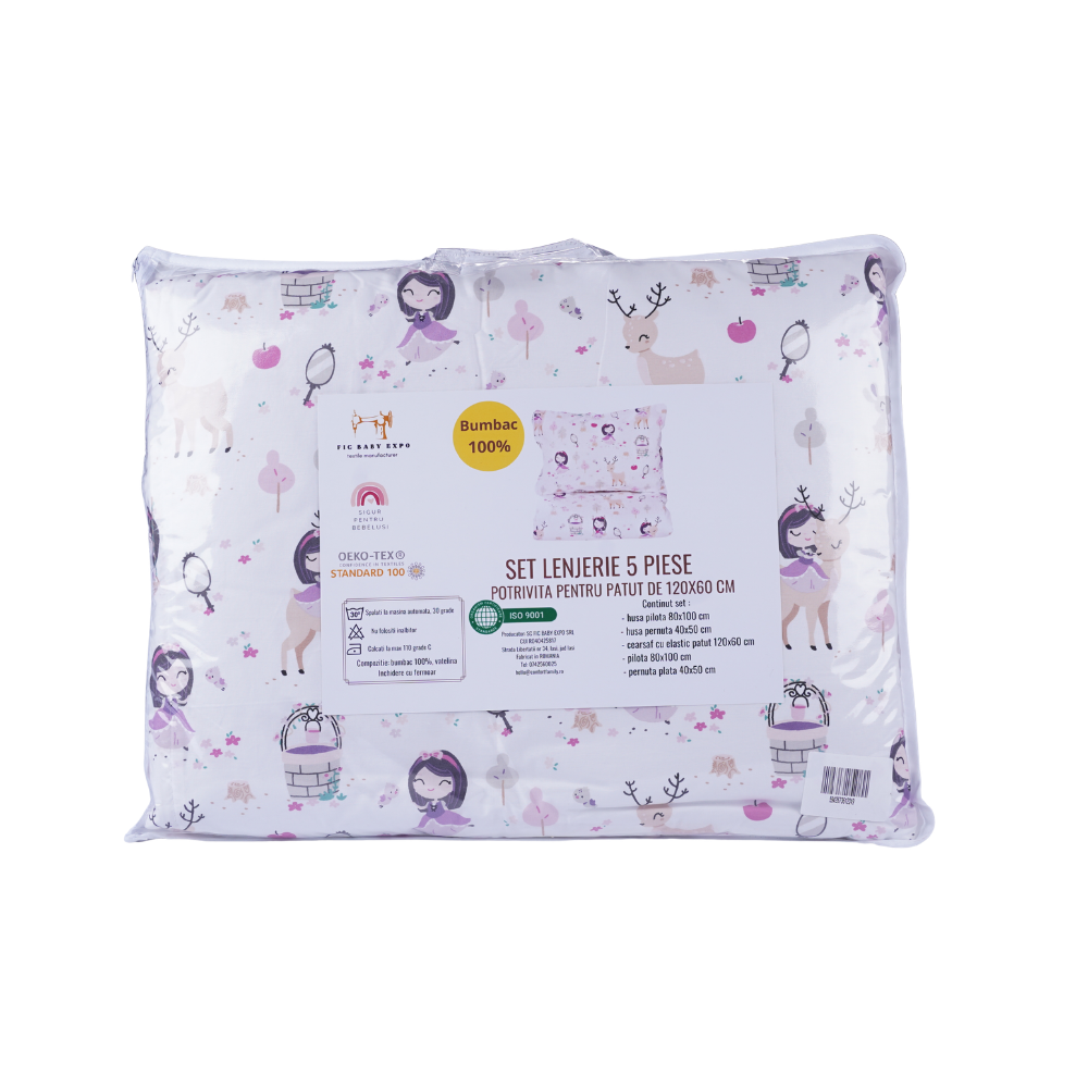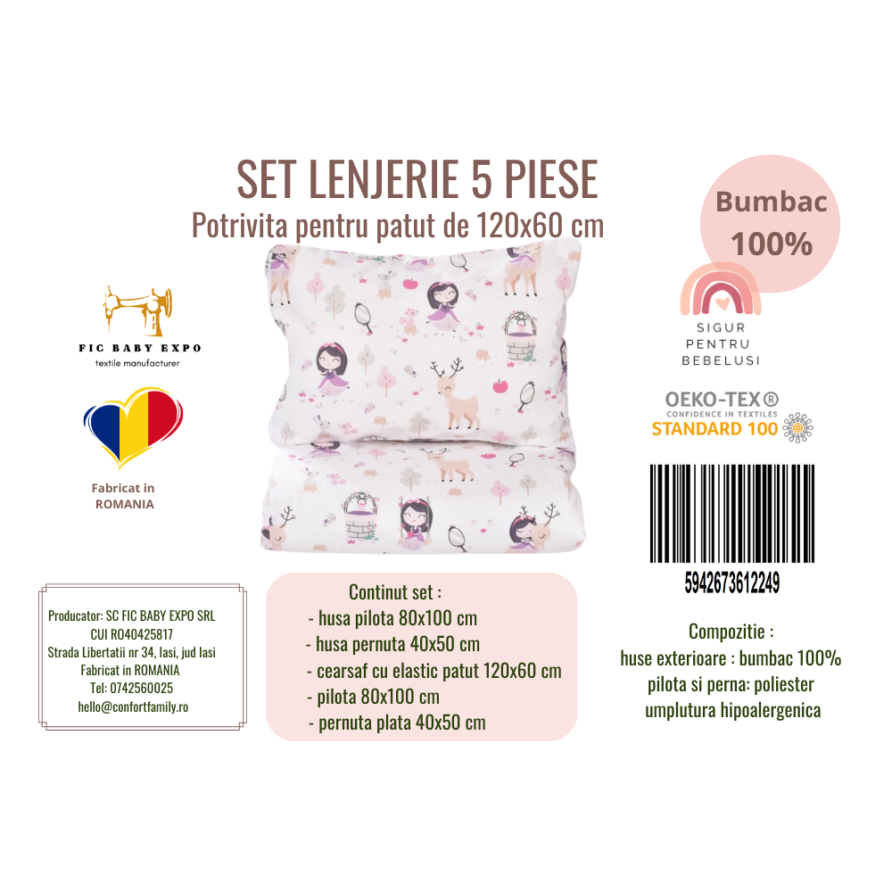 Contine 5 piese si este potrivita pentru patutul de 120x60 cm.
