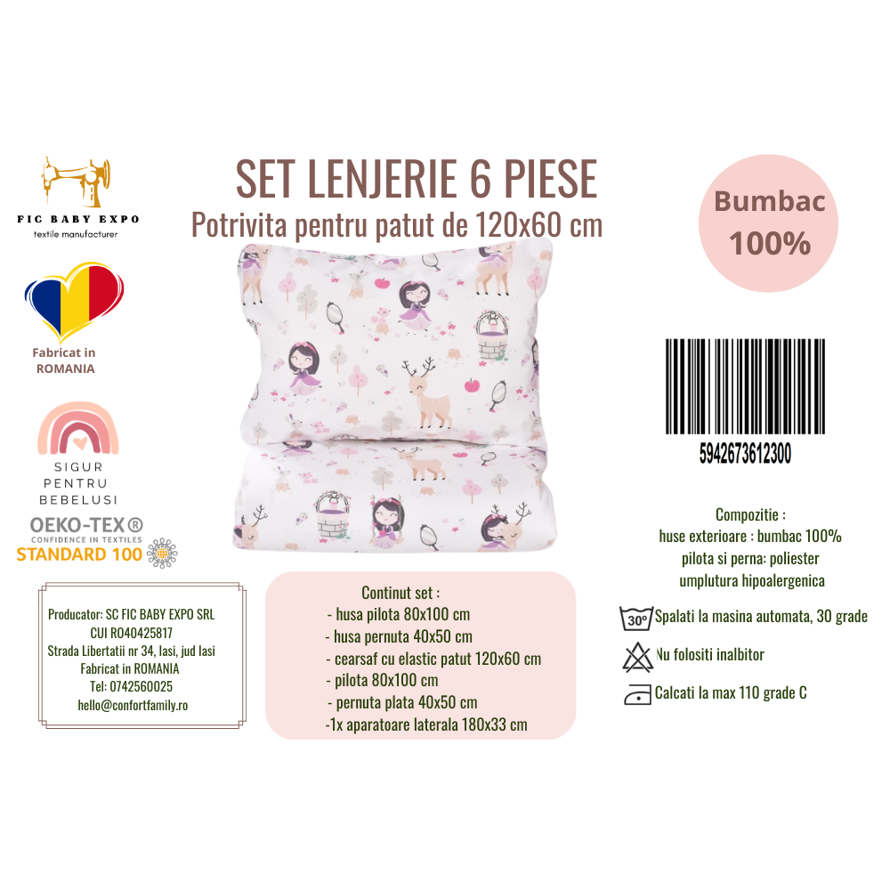 Lenjeria este realizata din bumbac 100% moale si foarte confortabil.