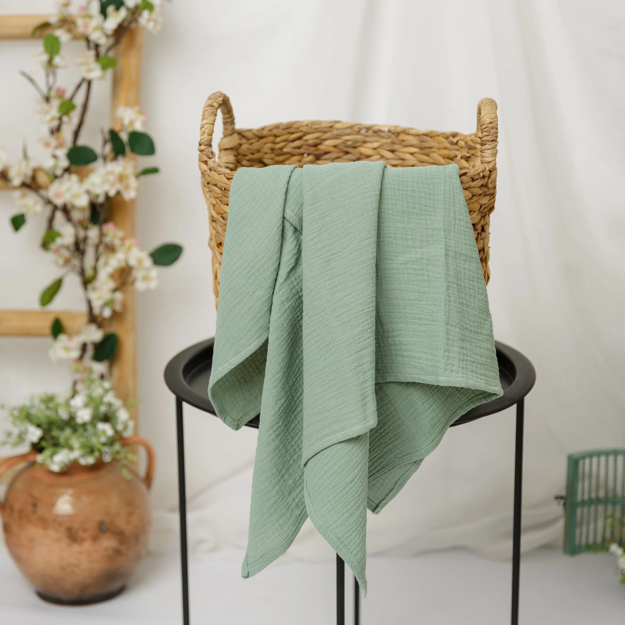 Păturică moale și delicată din muselină de bumbac certificată OEKO-TEX® pentru bebeluși, ideală pentru somn, înfășare și alăptare.