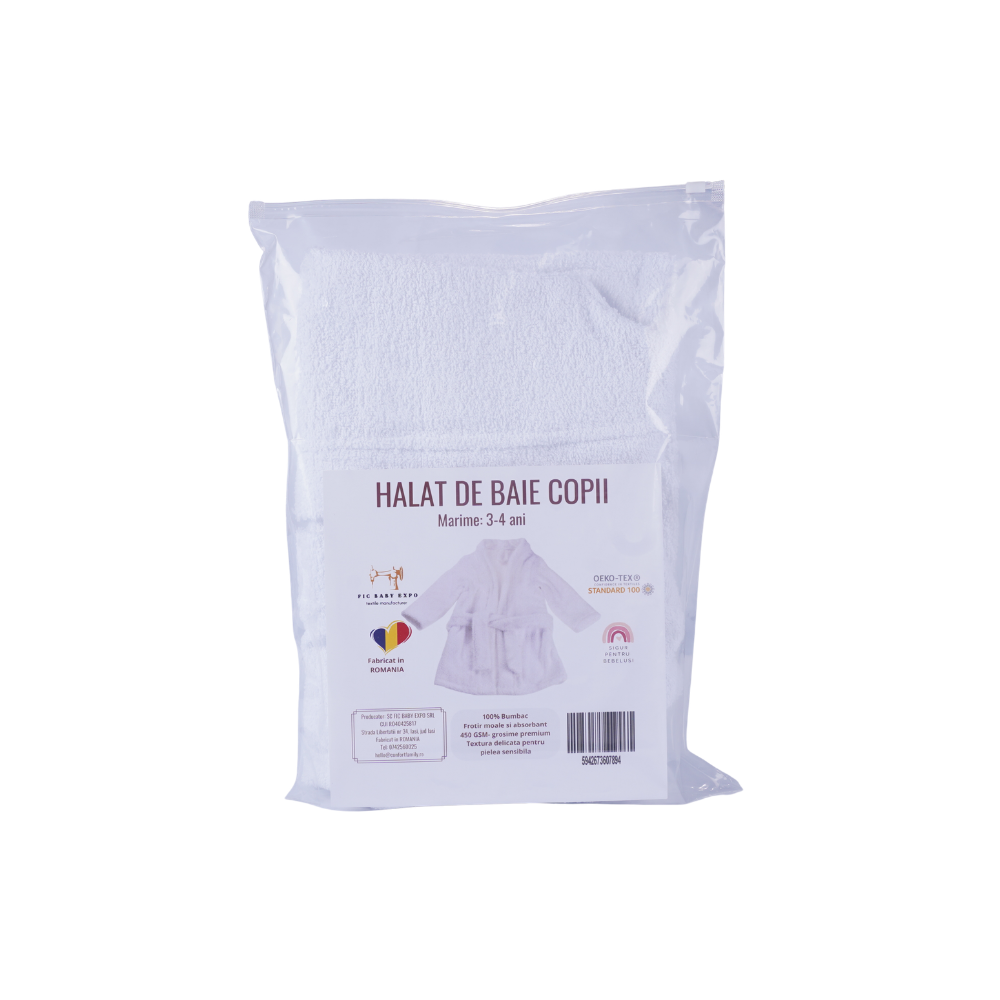 Halatul de baie oferă confort și o stare plăcută copiilor după băița de seară, fiind potrivit pentru a absorbi rapid apa și pentru a menține căldura după baie.