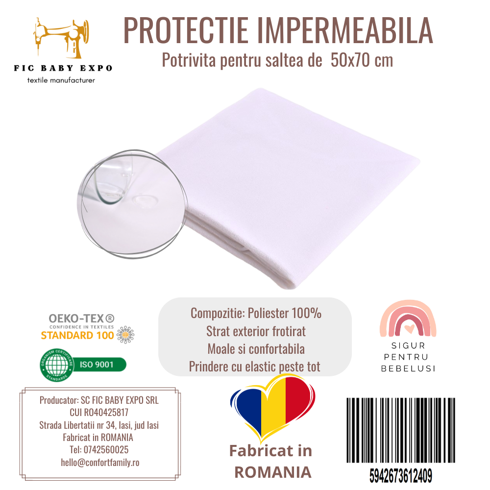 Protectia impermeabila sprijina pastrarea saltelutei patutului bebelusului, curata si uscata timp indelungat.