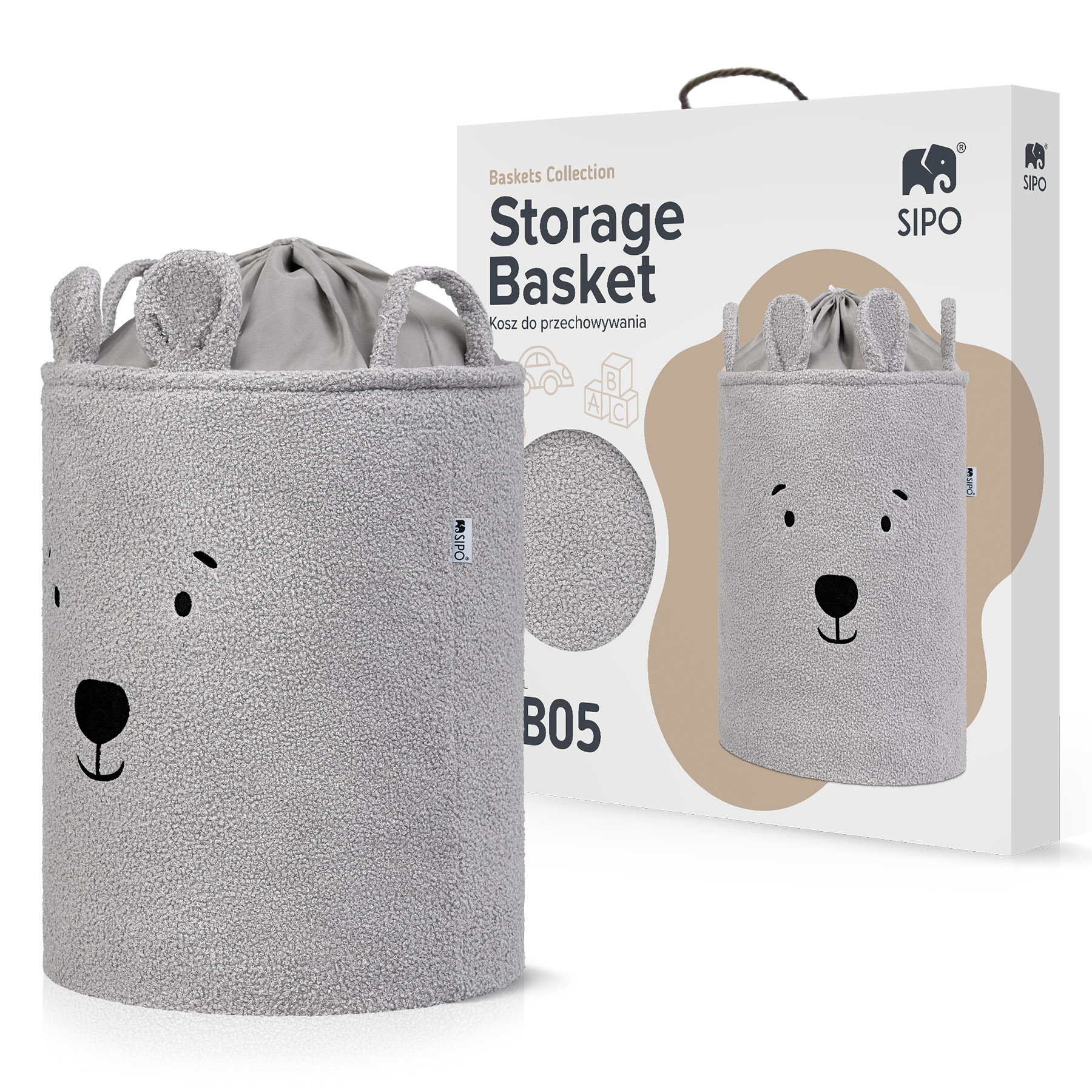 SIPO BB05 este un organizator premium pentru depozitare, realizat din material boucle ultra-moale și pufos, cu design scandinav patentat. Cu o capacitate de 43 litri și o nuanță elegantă de gri, este ideal pentru organizarea jucăriilor, textilelor sau accesoriilor, oferind un aspect ordonat și modern spațiilor interioare.