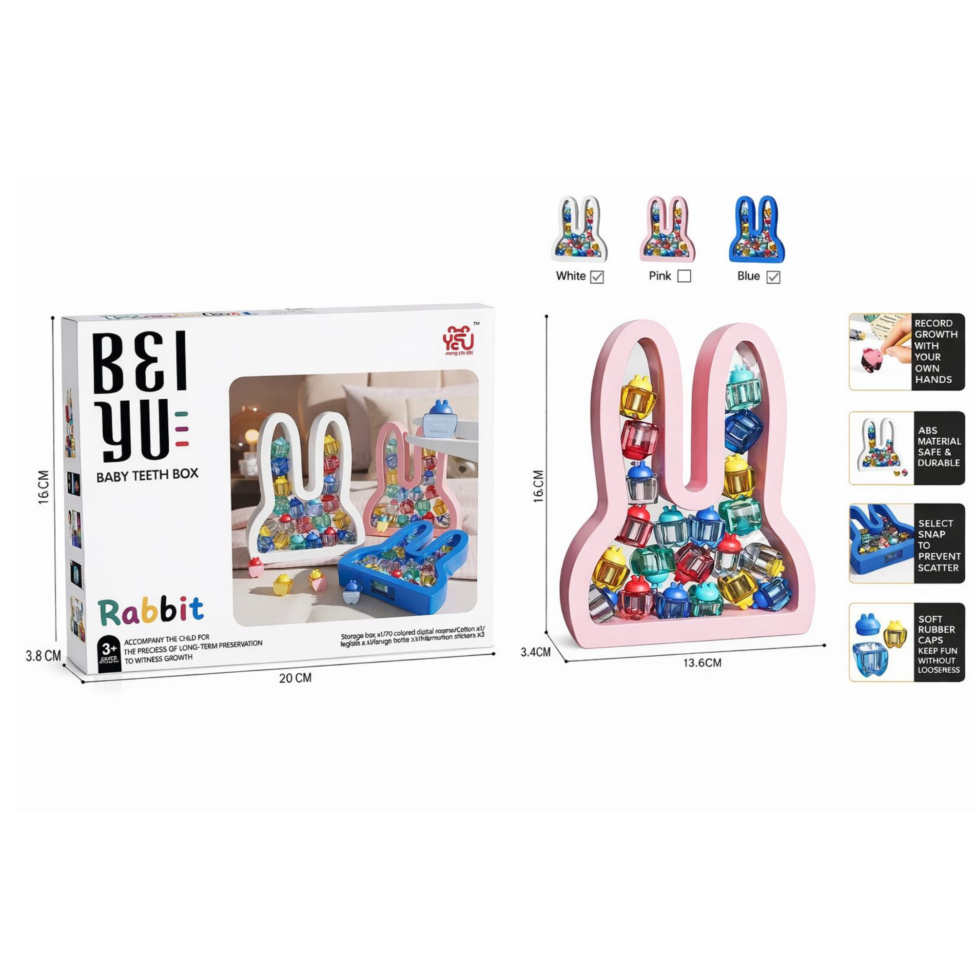 Păstrează într-un mod organizat și simpatic amintirile din copilărie cu această cutie pentru dinții de lapte, în formă de iepuras. Produsul este conceput pentru depozitarea dinților de lapte ai copilului, transformând fiecare etapă de creștere într-o amintire frumoasă pentru familie.