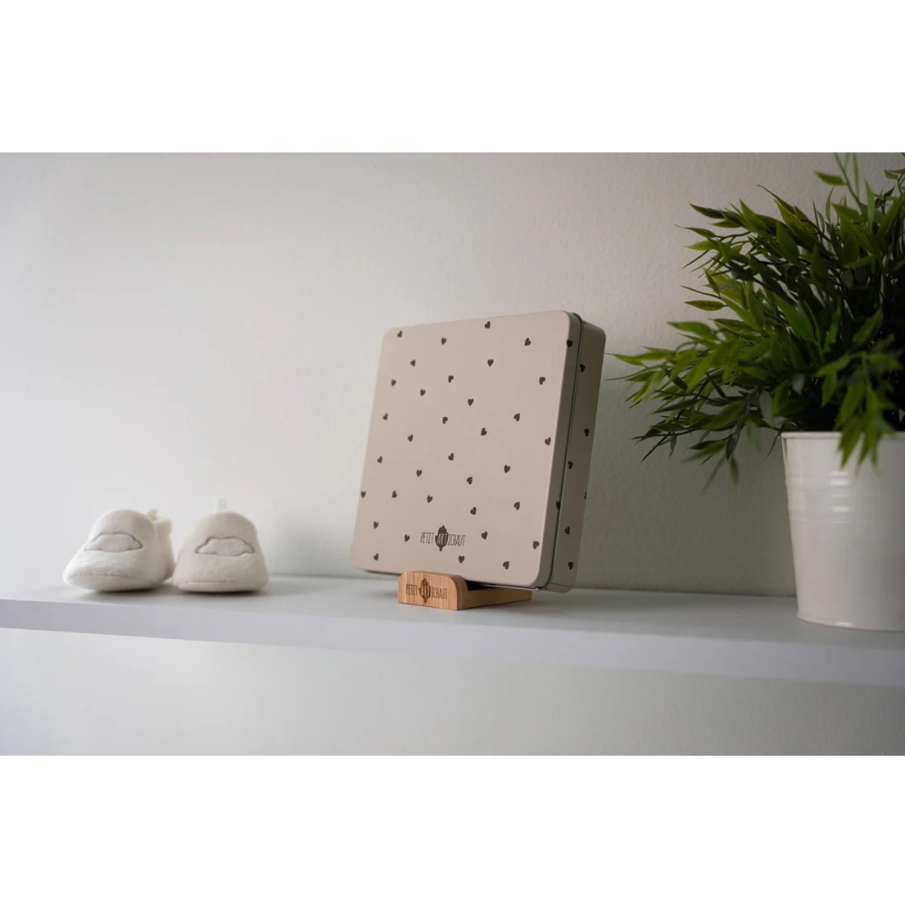 Cutia Petit Artichaut Baby Box Square – Pretty Hearts este o modalitate elegantă și emoționantă de a păstra primele amintiri ale bebelușului. Designul său delicat, cu model de inimioare și nuanțe calde, o transformă într-o piesă decorativă deosebită, potrivită pentru camera copilului sau pentru un cadou special de naștere.