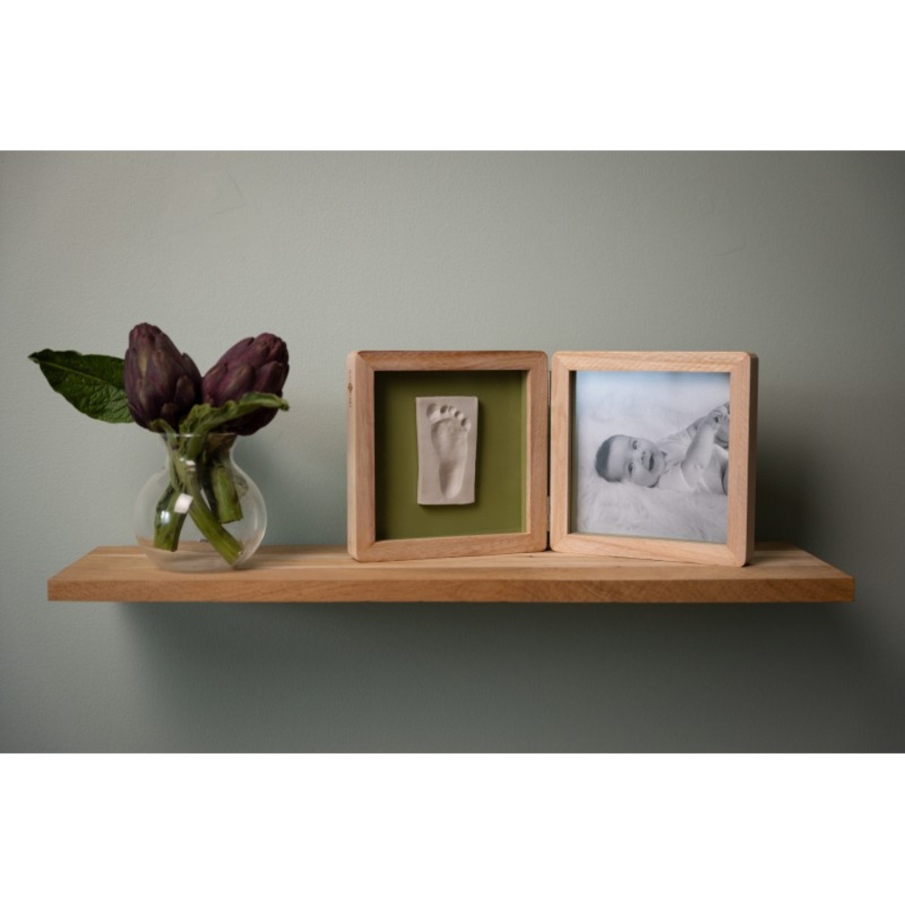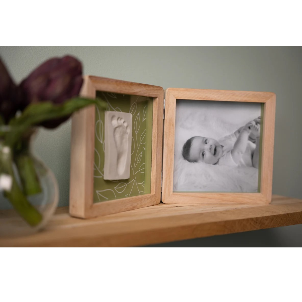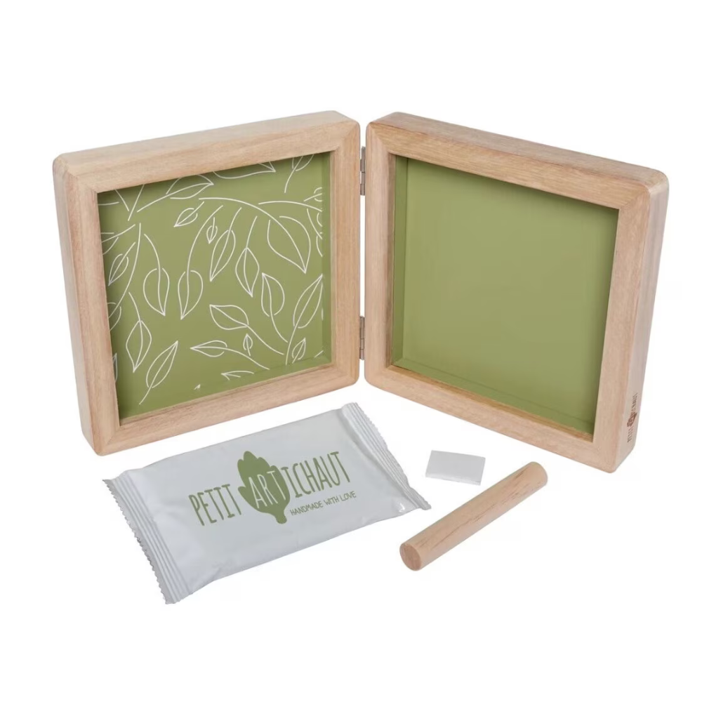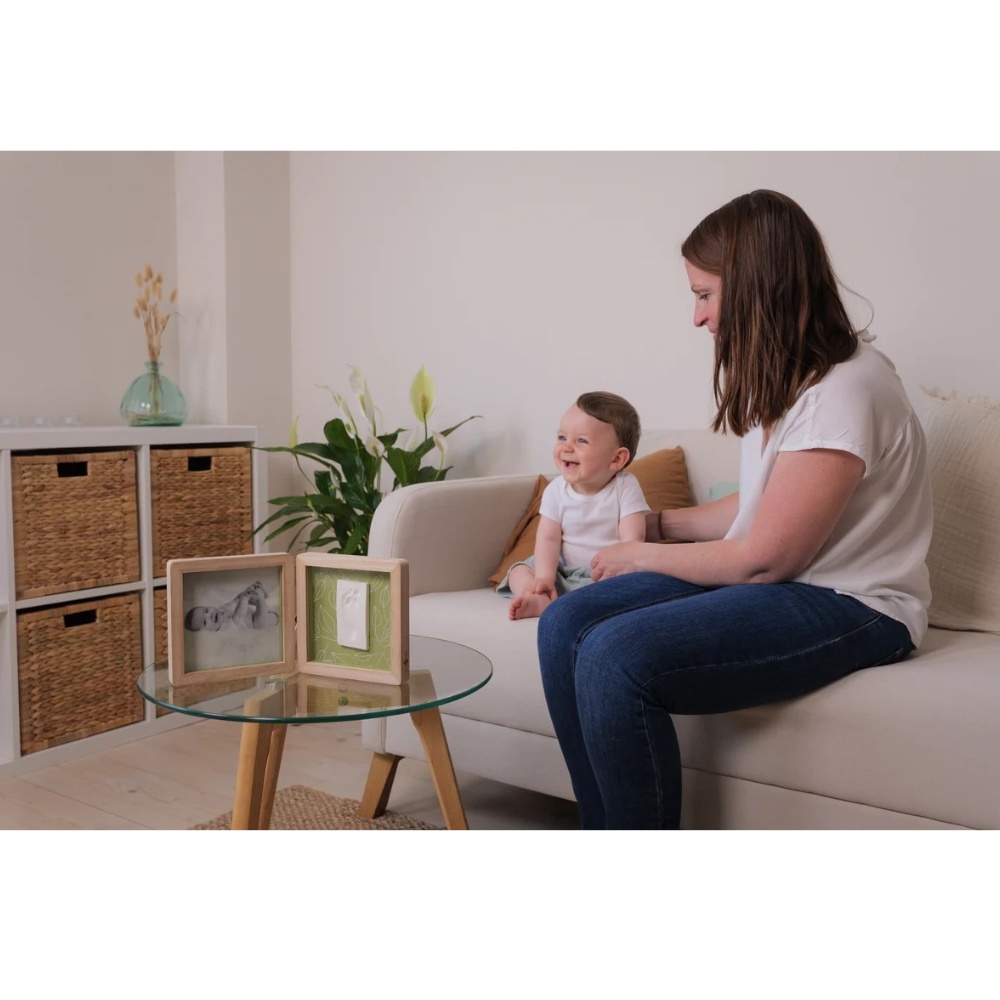 Rama dublă Petit Artichaut Olive Tree este un mod elegant și emoționant de a păstra amintirile din primele luni ale bebelușului. Această ramă combină un spațiu dedicat unei fotografii cu un kit pentru amprentă, oferind un suvenir unic, plin de farmec și sensibilitate. Designul său contemporan, în nuanțe de verde măsliniu și alb natural, se potrivește perfect în orice decor modern sau clasic.
