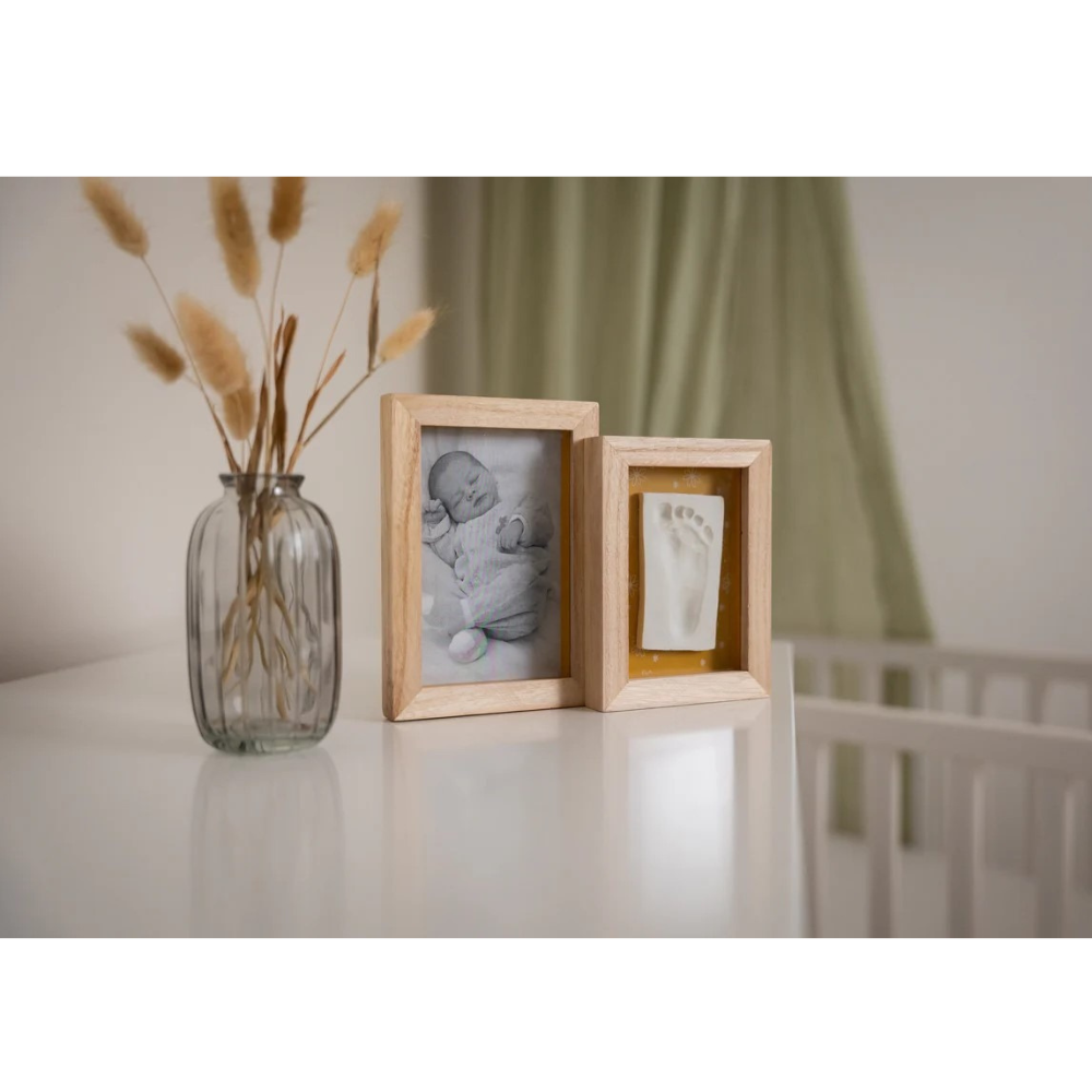 Rama Petit Artichaut – Duo Daisy Ochre oferă o modalitate elegantă și emoționantă de a expune fotografia și amprenta bebelușului tău. Cu un design cald și fundal reversibil în nuanță ocru, decorat cu motive florale delicate, această ramă adaugă un farmec natural oricărui spațiu, păstrând pentru totdeauna amintirile primei copilării.