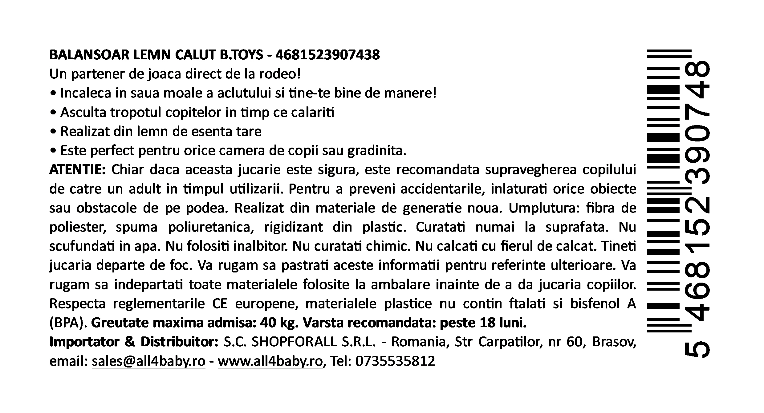 Balansoarul Btoys Calut Albastru este o jucărie interactivă și sigură, perfectă pentru orice cameră de copii. Simplu de utilizat, permite micuților să se lege în față și în spate, stimulând echilibrul și coordonarea.