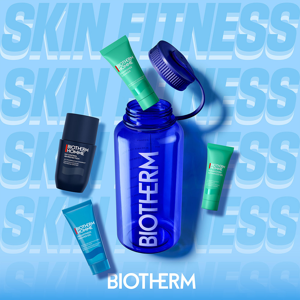 Setul Biotherm Power Drop vine într-o sticlă reutilizabilă pentru apă și conține 4 produse Biotherm esențiale pentru igiena și hidratarea zilnică a bărbaților: Day Control 48H Protection (75 ml), Aquafitness Shower Gel (40 ml), Aquapower Cleanser (40 ml) și Aquapower Advanced Gel (20 ml). Rutina rapidă care curăță, revigorează și hidratează din cap până-n picioare.