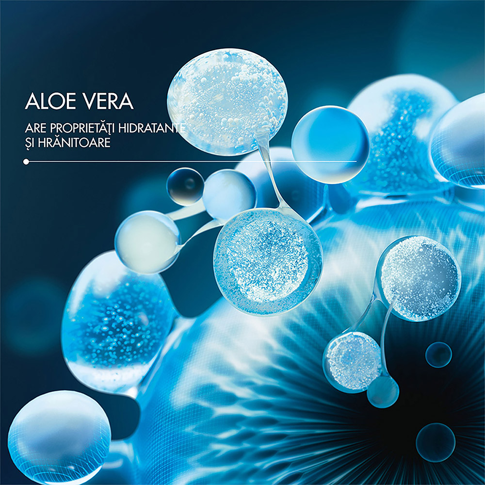 • Calmează și hidratează pielea sensibilă datorită conținutului de Aloe Vera.