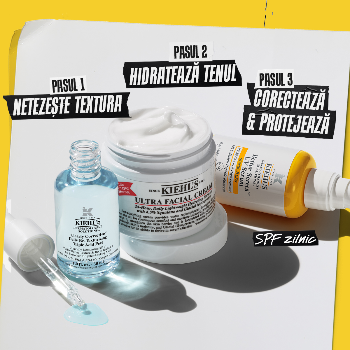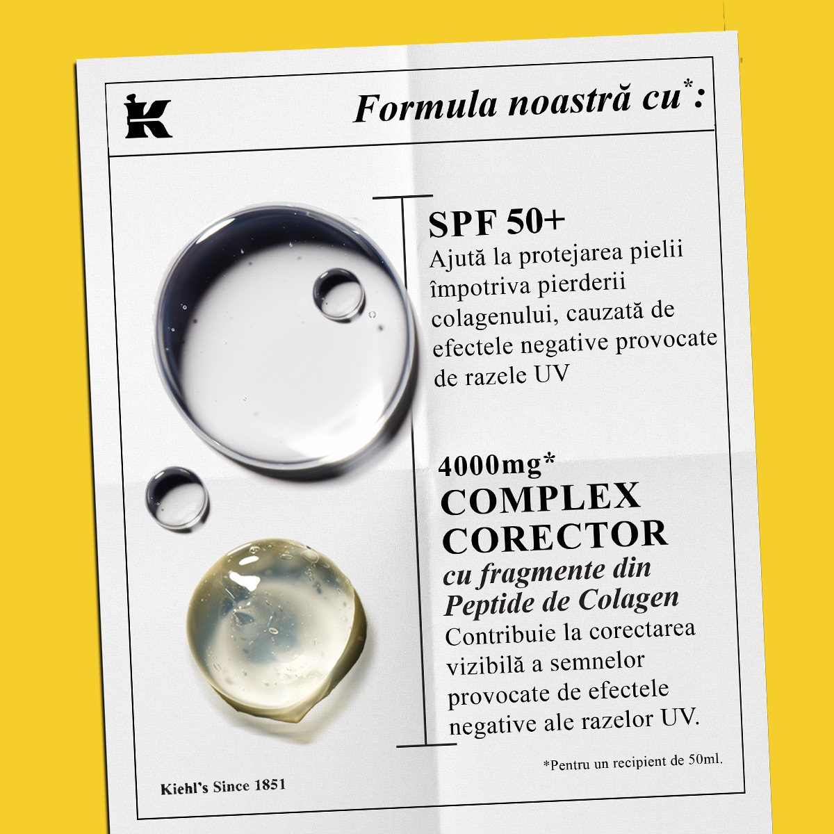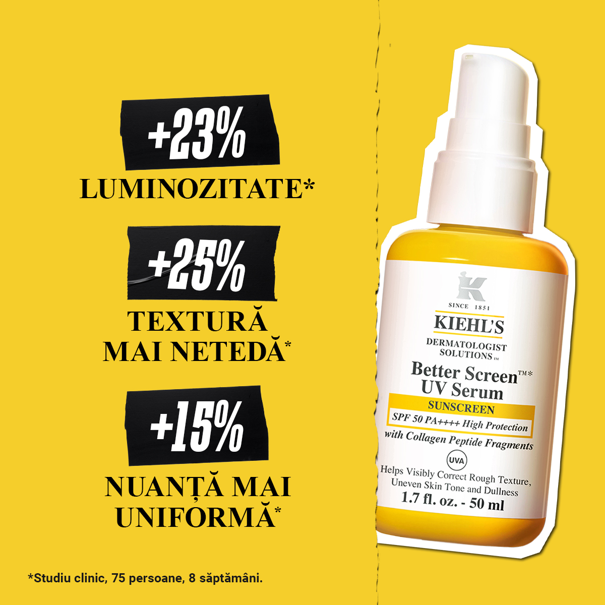 Serum cu protectie solara si peptide de colagen Kiehl's UV Better Screen SPF50+, 50 ml este un produs multifunctional care combina protectia solara avansata cu actiunea anti-aging, ajutand la prevenirea si corectarea primelor semne de imbatranire, in timp ce mentine pielea hidratata si luminoasa.