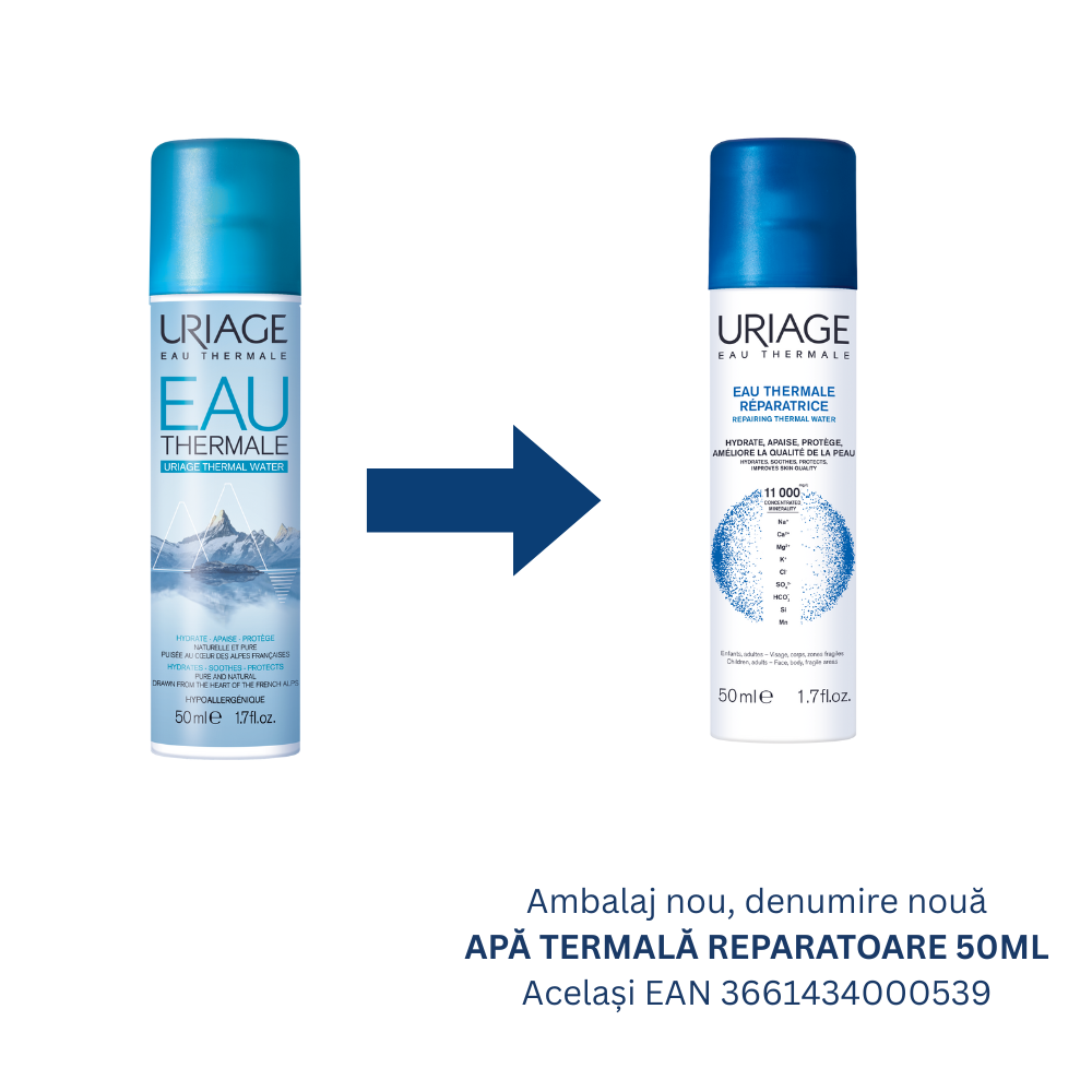 Apa Termală Uriage este un produs natural de îngrijire zilnică, bogat în oligoelemente și săruri minerale esențiale. Recoltată direct de la sursă, păstrează intacte proprietățile sale unice, oferind hidratare, calmare și protecție pentru toate tipurile de piele, inclusiv cea sensibilă. Utilizată constant, redă pielii luminozitatea și confortul natural.