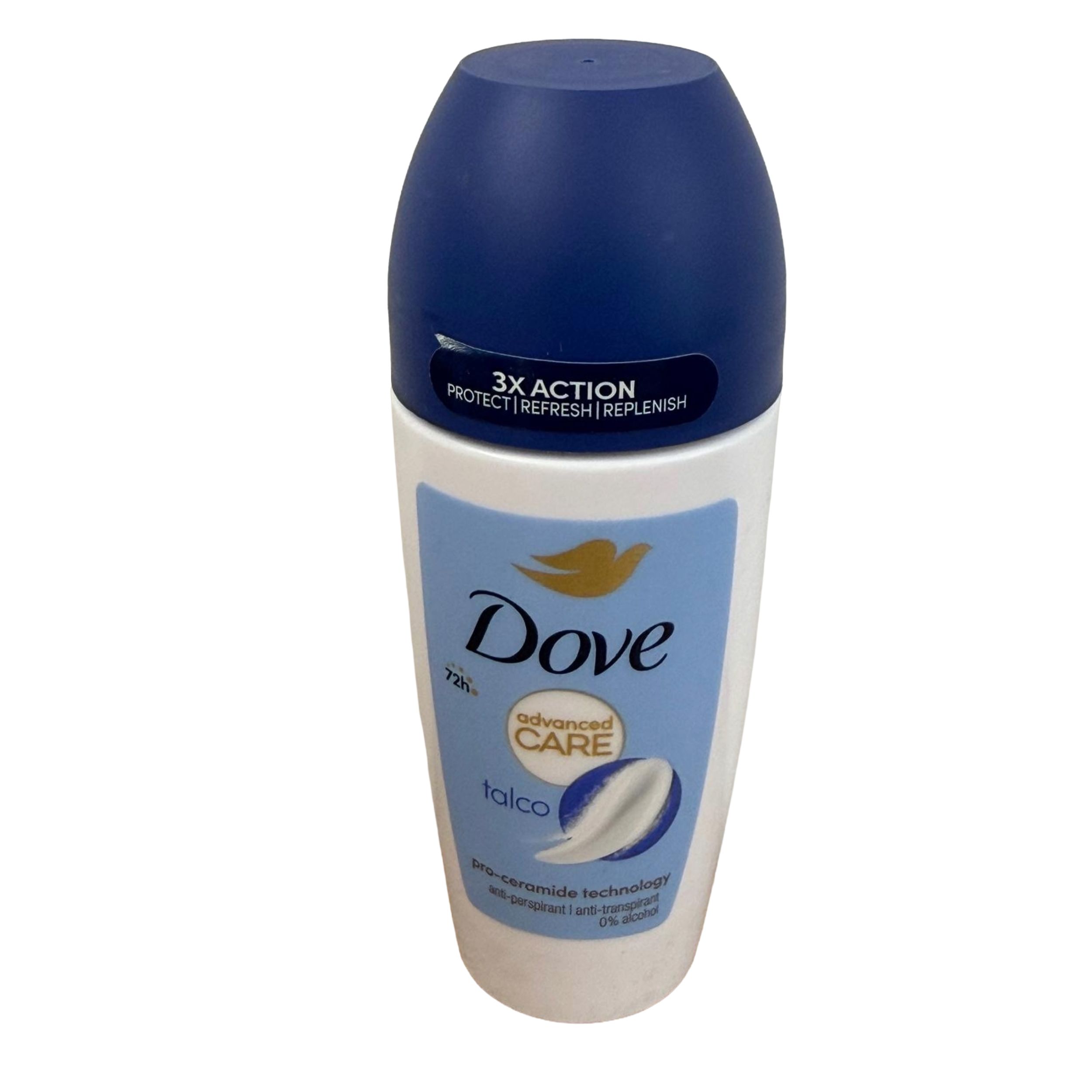 Dove Talco Roll-On oferă o aromă delicată de pudră și protecție de 48 de ore în format convenabil.