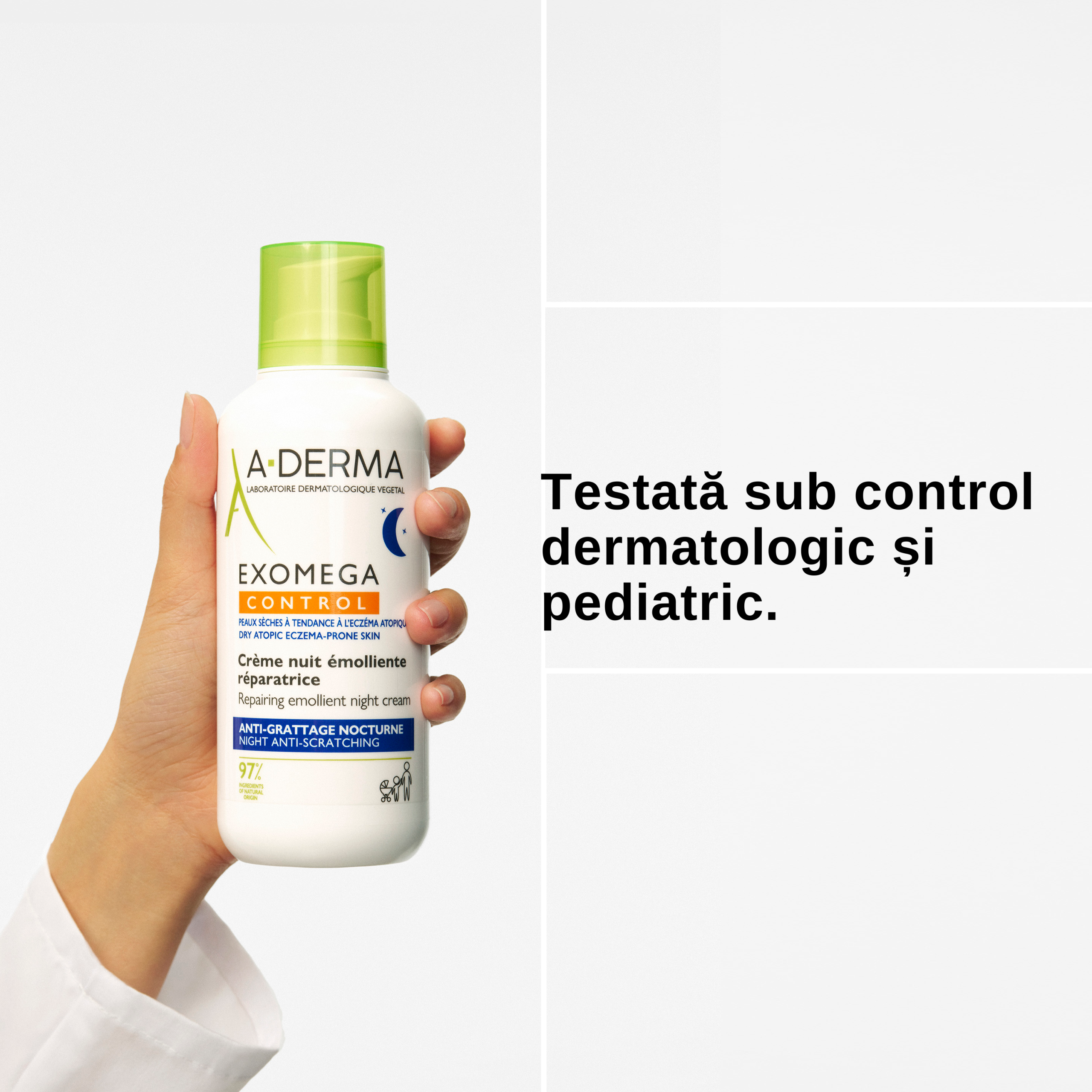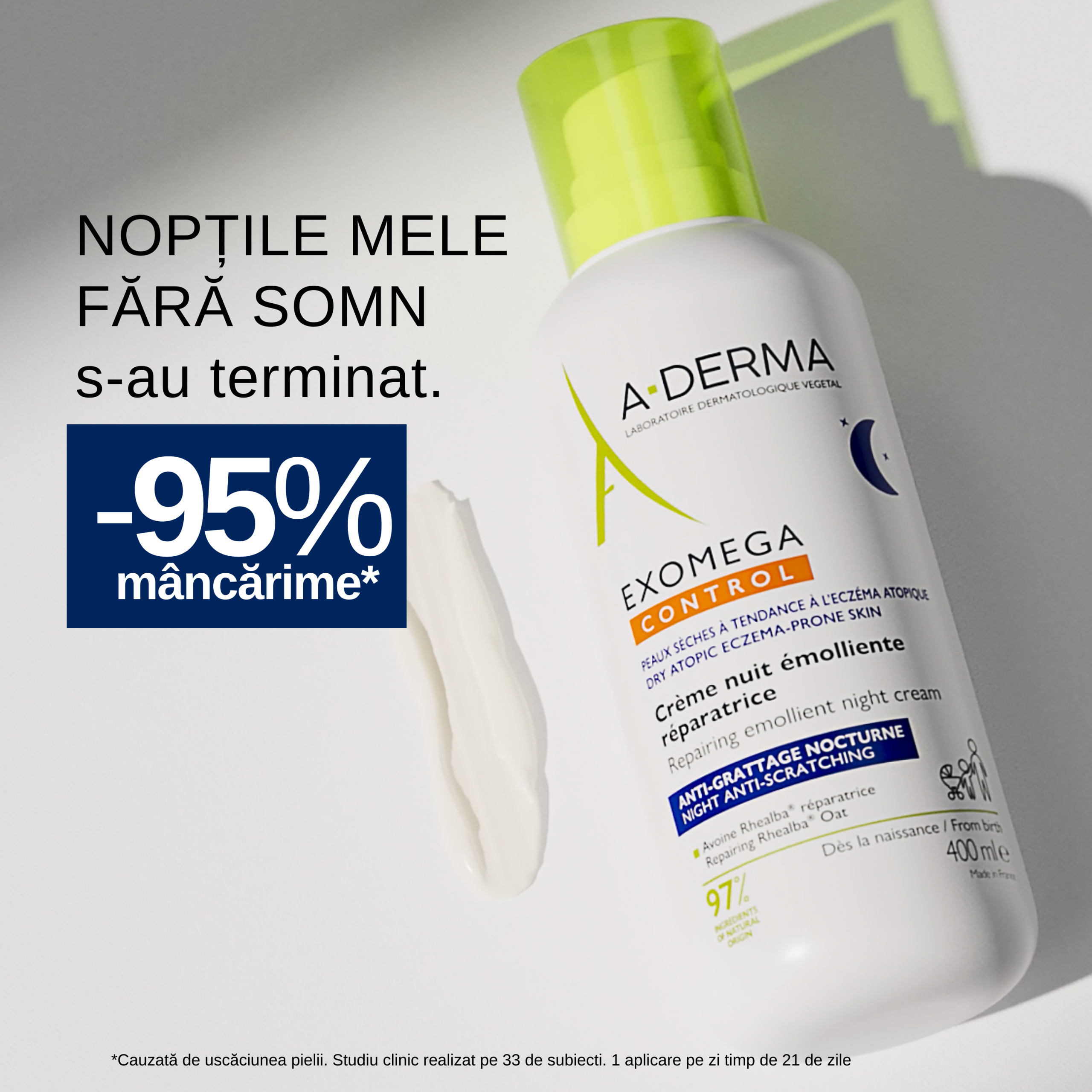 A-Derma Exomega Control Crema de noapte emolienta reparatoare este special formulata pentru ingrijirea pielii uscate, foarte uscate si atopice. Aceasta crema de noapte calmeaza imediat senzatia de mancarime, reduce disconfortul cutanat si sustine refacerea barierei pielii pe durata noptii, contribuind la un somn linistit si odihnitor. Formula sa dermatologica, cu ingrediente de origine naturala, este adaptata pielii sensibile si predispuse la iritatii.