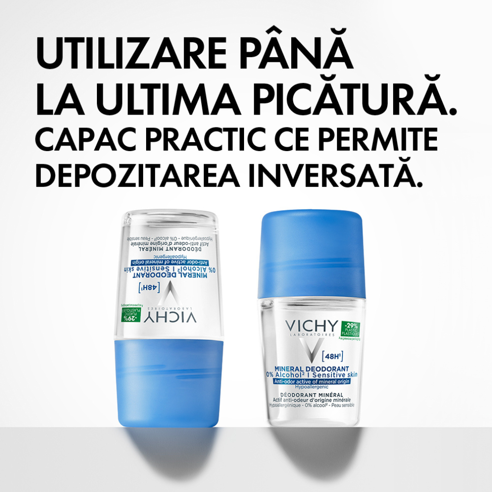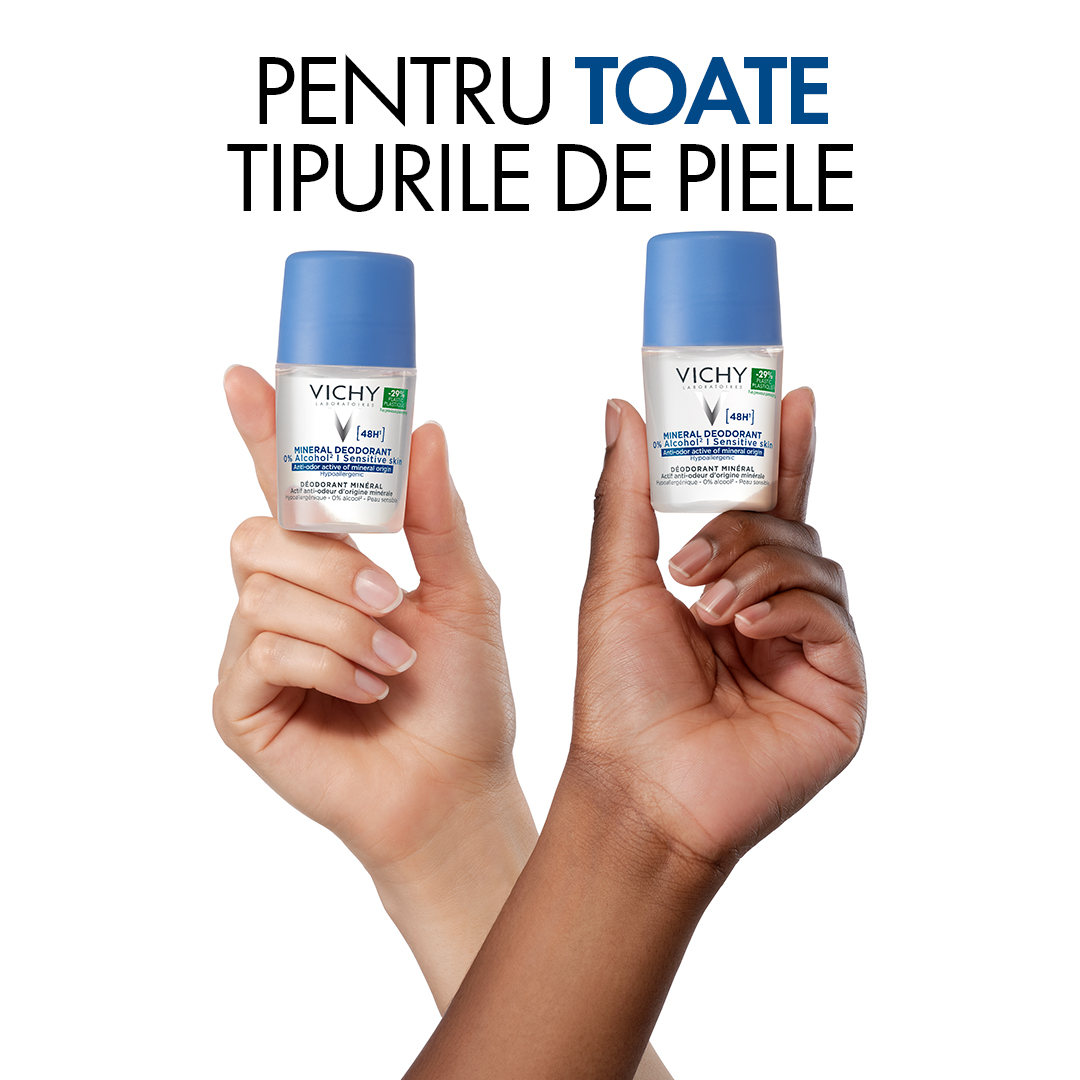 Ultima actualizare a informatiilor de prezentare pentru Deodorant Roll-On fara aluminiu Mineral 48H, 50 ml, Vichy a fost efectuata la data de 15-11-2025.  |  Raporteaza Descriere Gresita