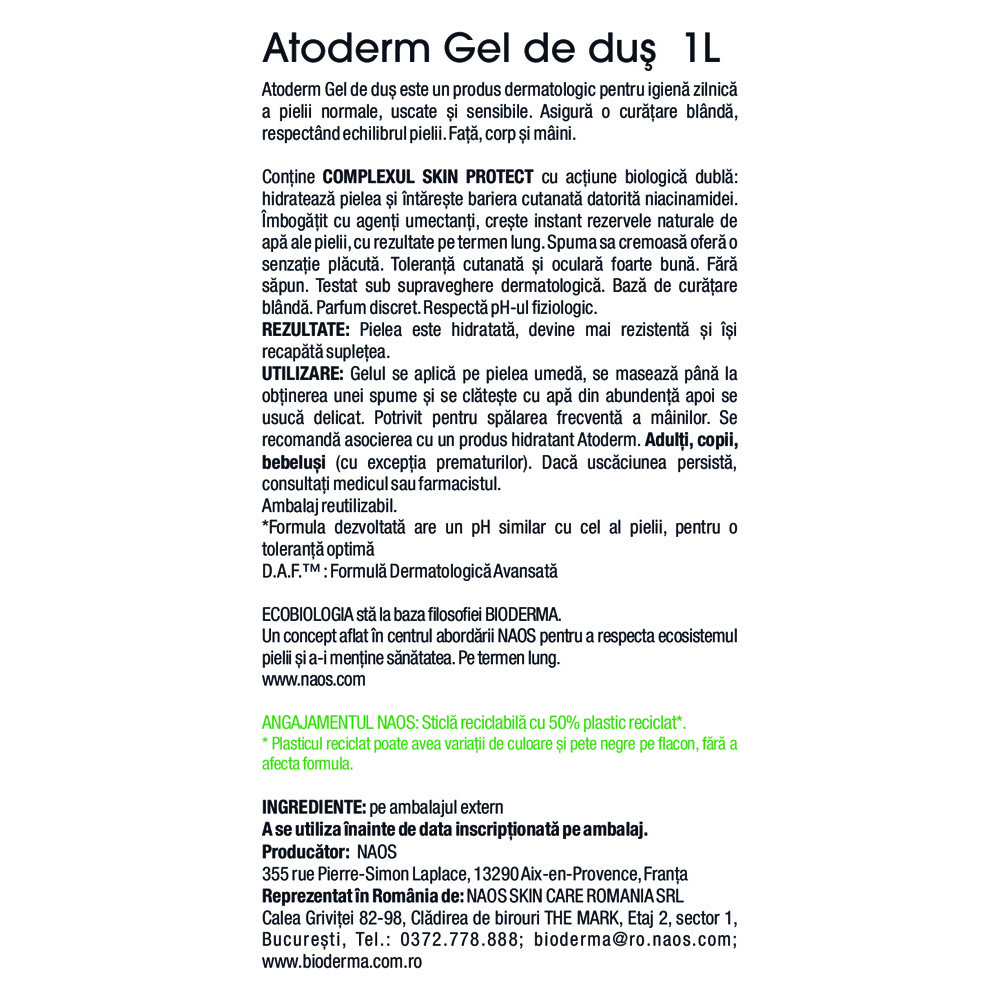 Ultima actualizare a informatiilor de prezentare pentru Gel de dus pentru piele uscata, sensibila si atopica Atoderm, 1000 ml, Bioderma a fost efectuata la data de 16-04-2026.  |  Raporteaza Descriere Gresita
