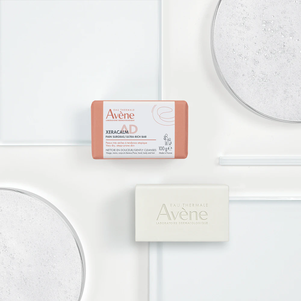 Avène XeraCalm A.D. săpun solid relipidant – curățare delicată pentru pielea foarte uscată, predispusă la eczemă atopică și mâncărimi. Potrivit pentru bebeluși, copii și adulți.