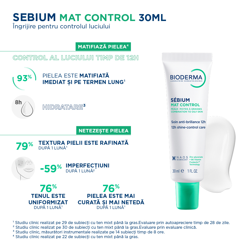 Sebium Mat control matifiază pielea mixtă-grasă.