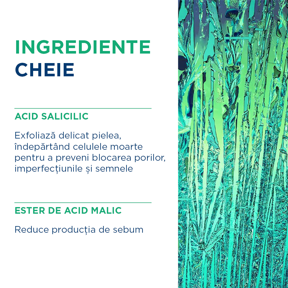 REZULTATE: eficacitate dovedită clinic. Pielea este imediat hidratată şi matifiată. Imperfecțiunile şi coşurile sunt reduse zi după zi. Pielea devine luminoasă şi netedă, cu rezultate pe termen lung.