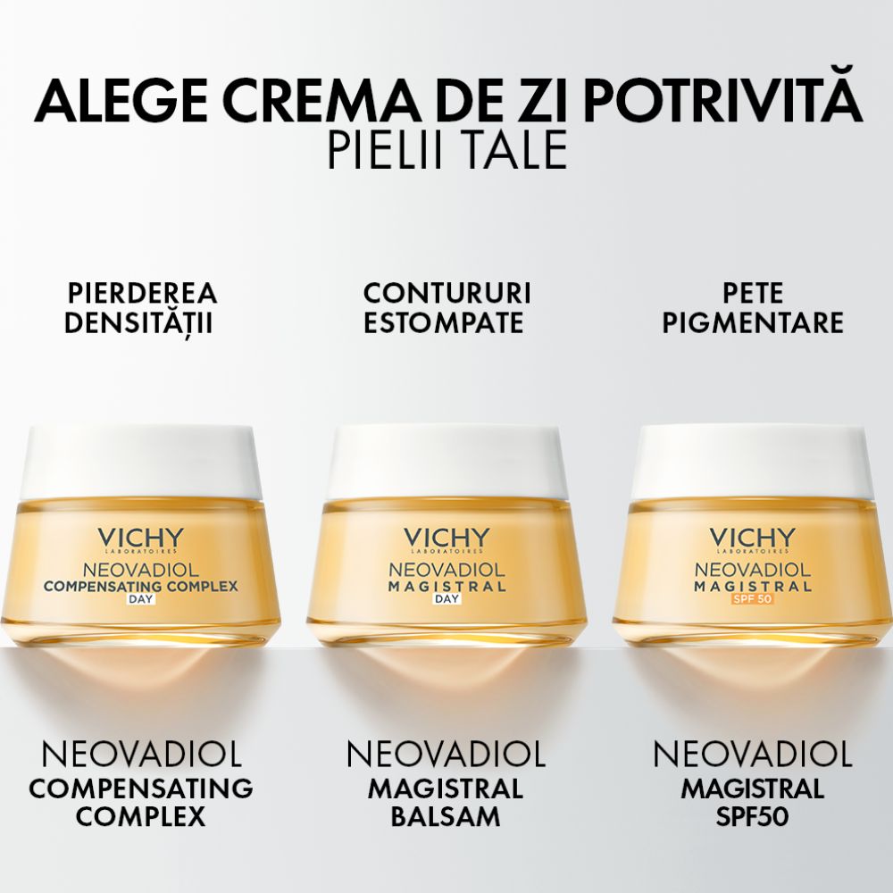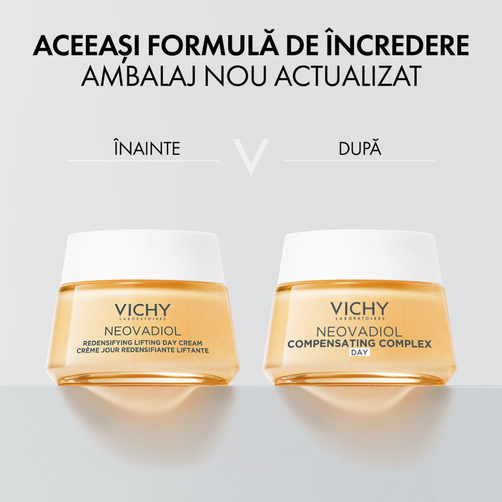 Vichy Neovadiol Compensating Complex este o crema de zi cu efect redensifiant si de lifting, formulata special pentru a compensa impactul vizibil al schimbarilor hormonale asupra pielii in perioada menopauzei.