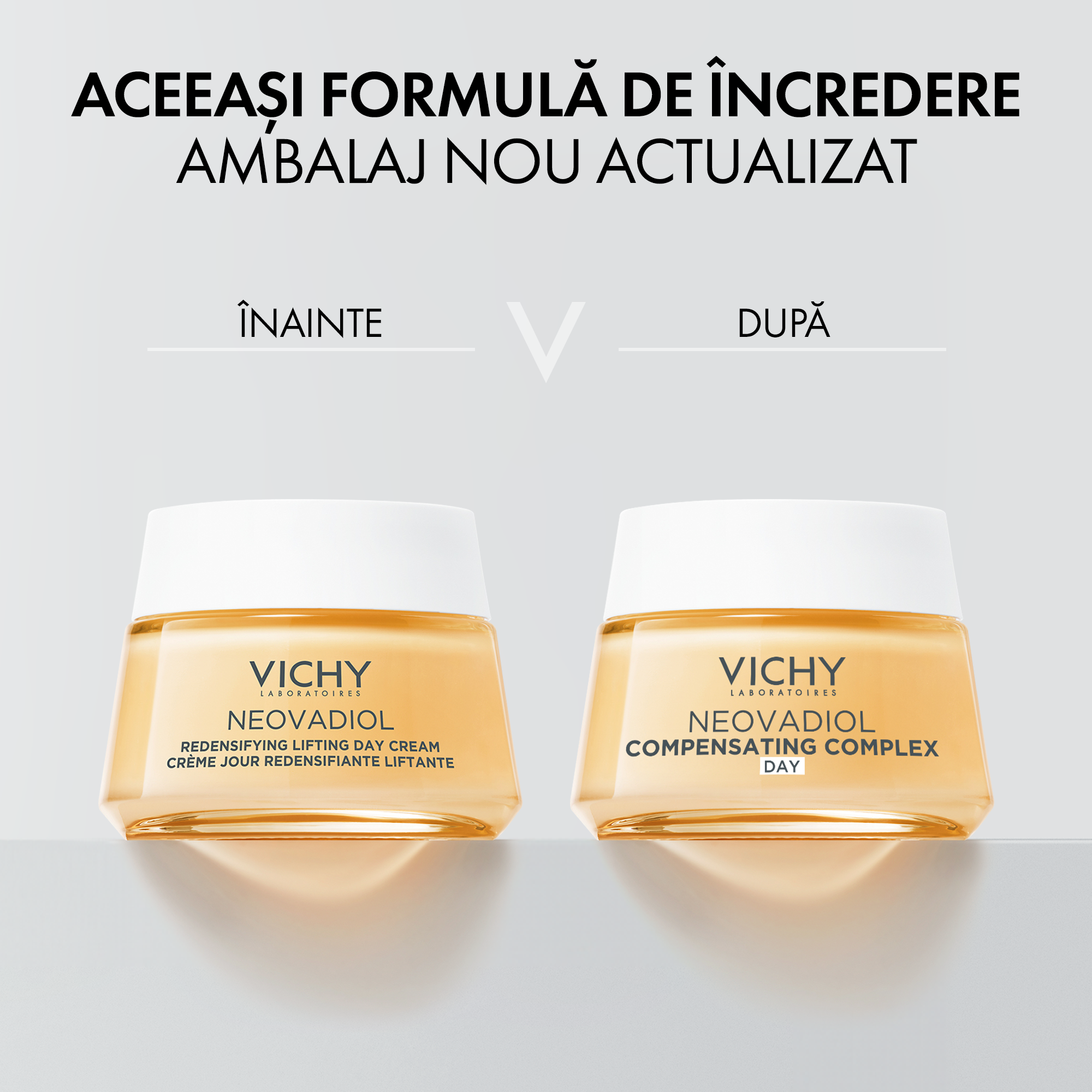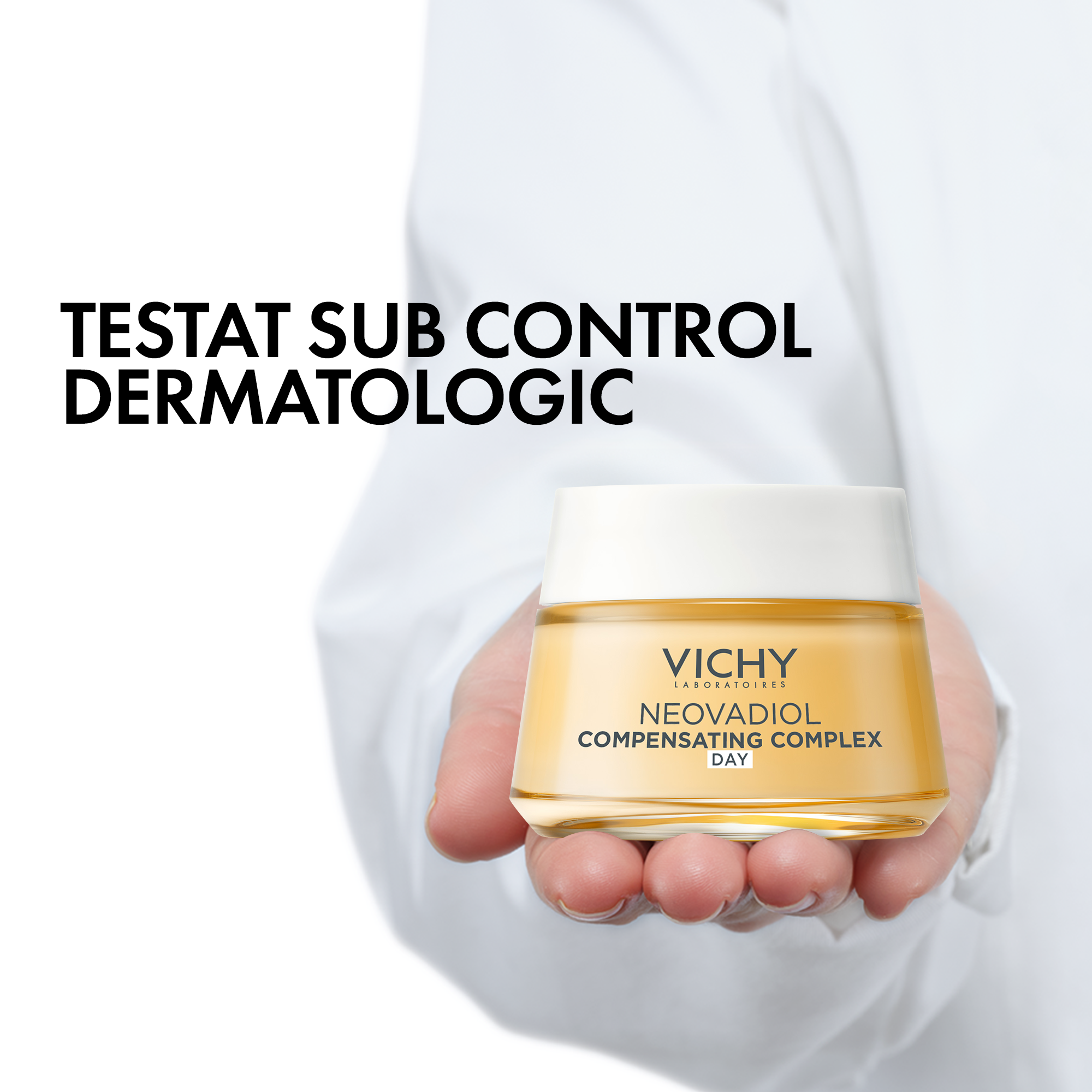 Crema Neovadiol Compensating Complex de Zi cu Proxylane, Extract de Cassia și Acid Hialuronic compensează impactul vizibil al schimbărilor hormonale asupra pielii.