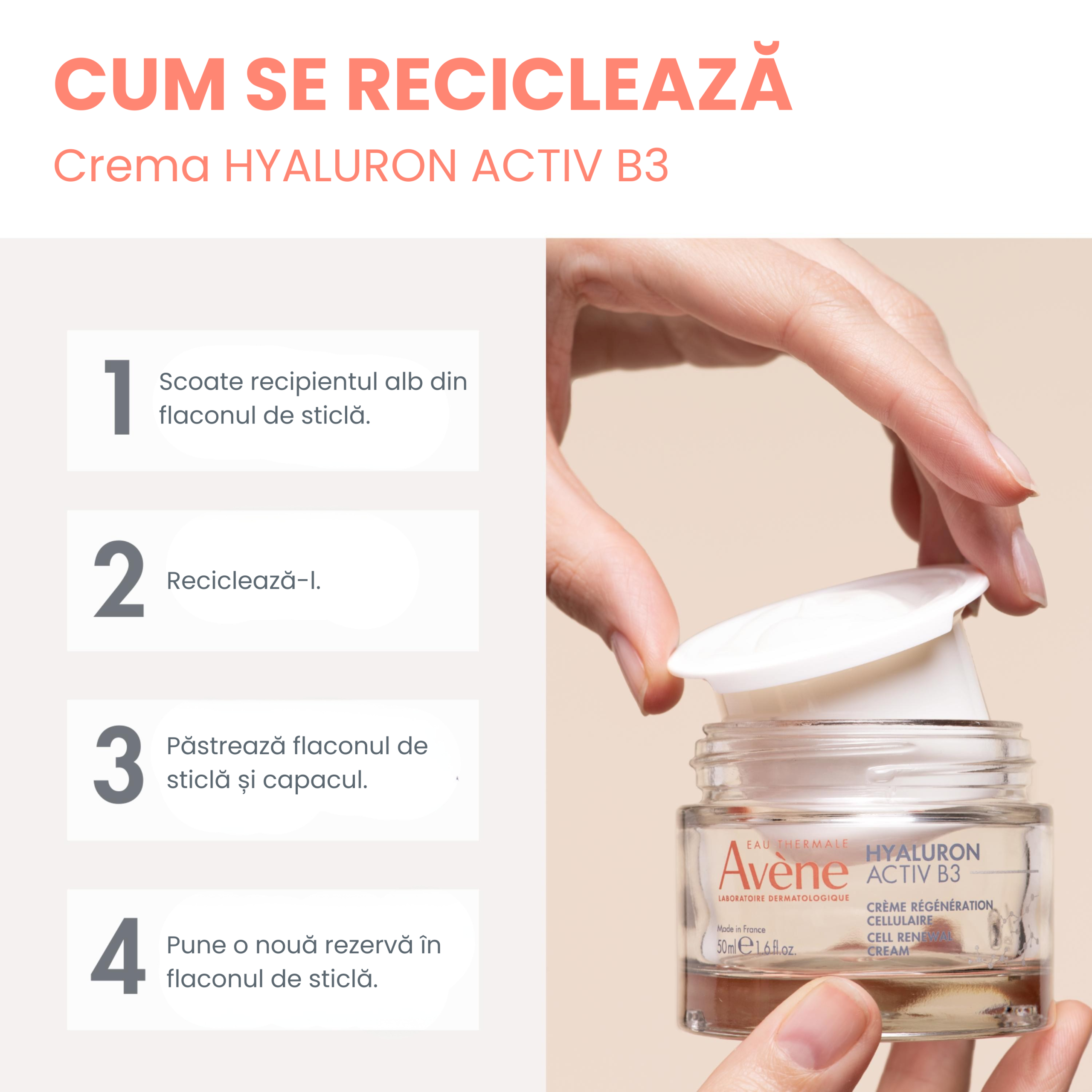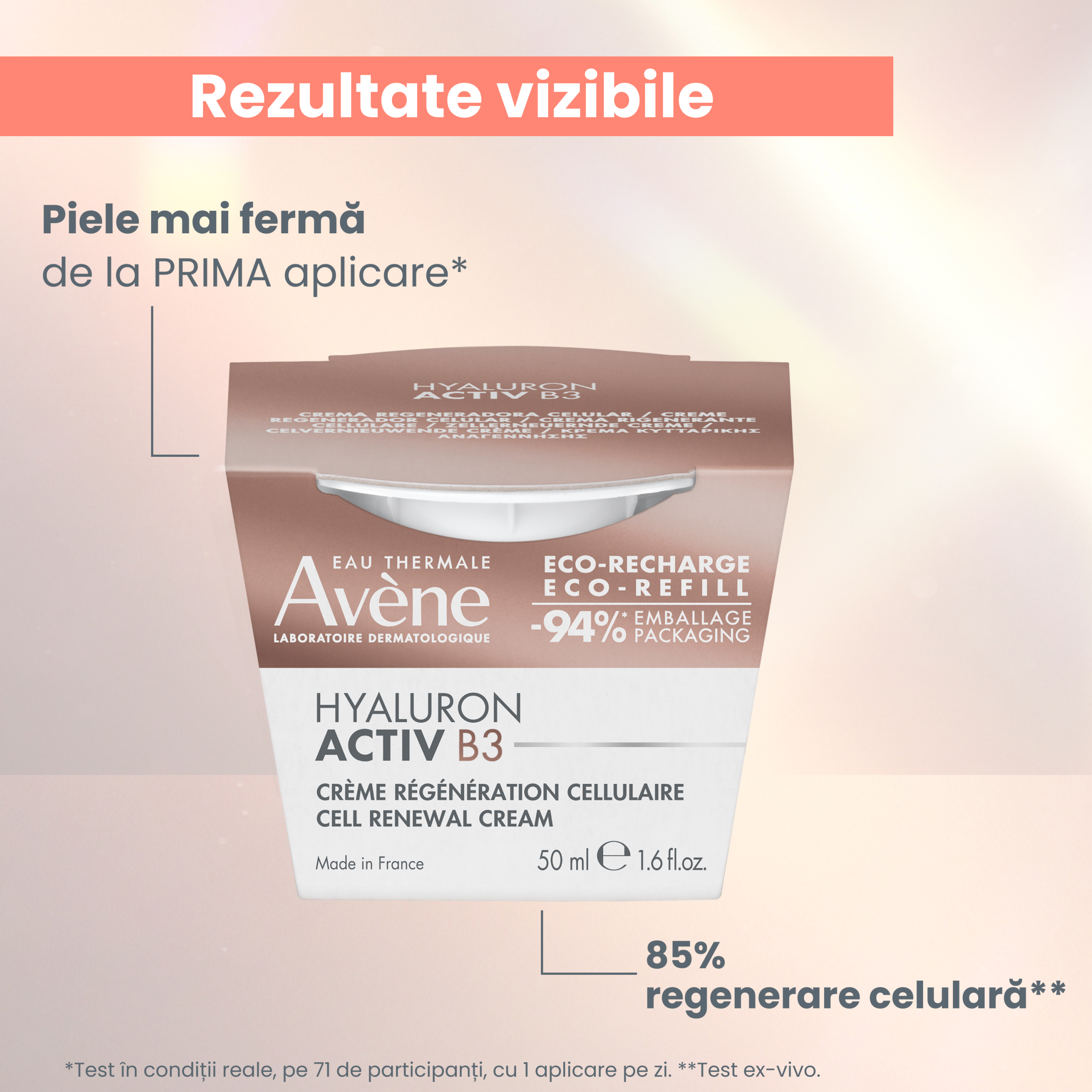 Aplicați dimineața și/sau seara pe față, gât și decolteu, singură sau după aplicarea serului Hyaluron Activ B3.