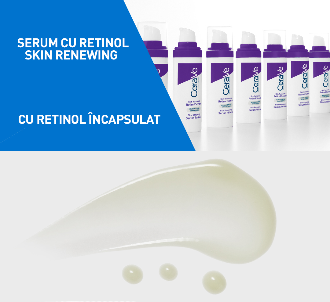 Dezvoltat împreună cu medicii dermatologi, Serumul cu Retinol Skin Renewing CeraVe hidratează, în timp ce reduce aspectul liniilor fine și al ridurilor de la nivelul pielii și ajută la restabilirea barierei cutanate. Cu retinol încapsulat, 3 ceramide esențiale și acid hialuronic. Potrivit pentru tenul sensibil.