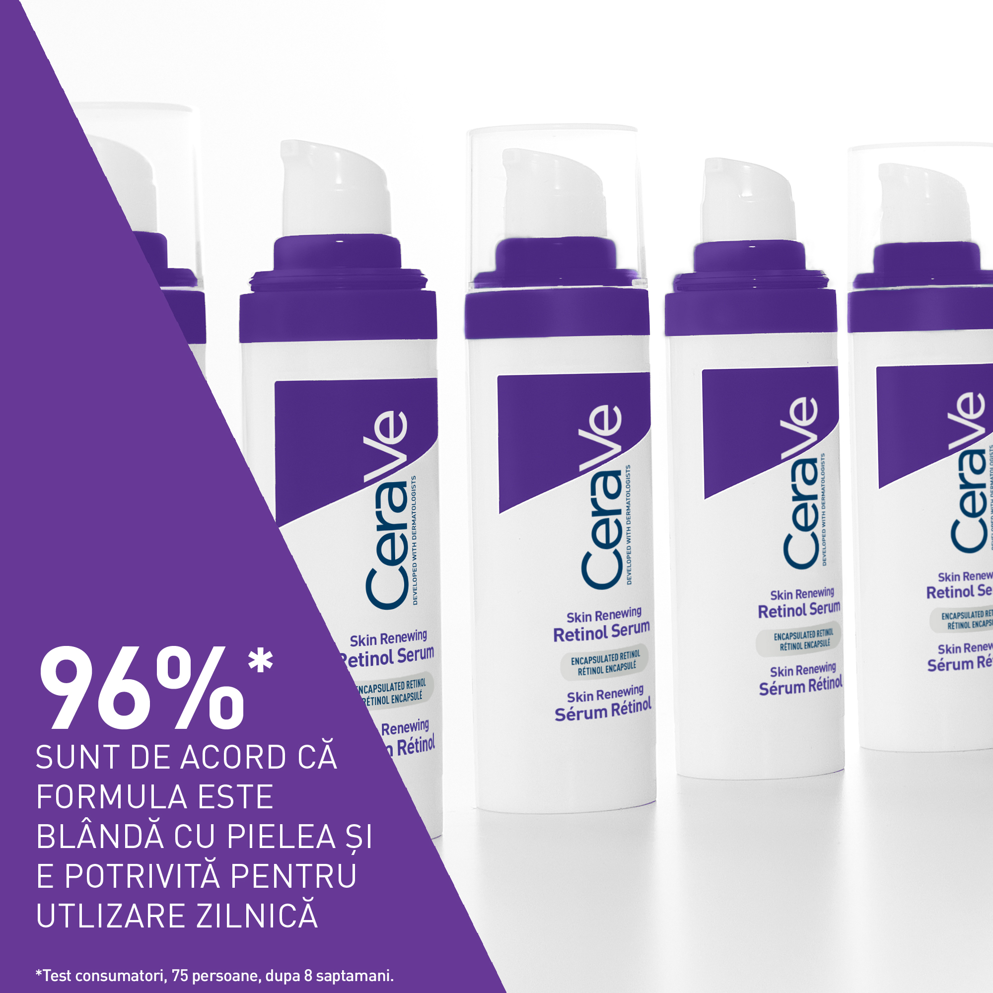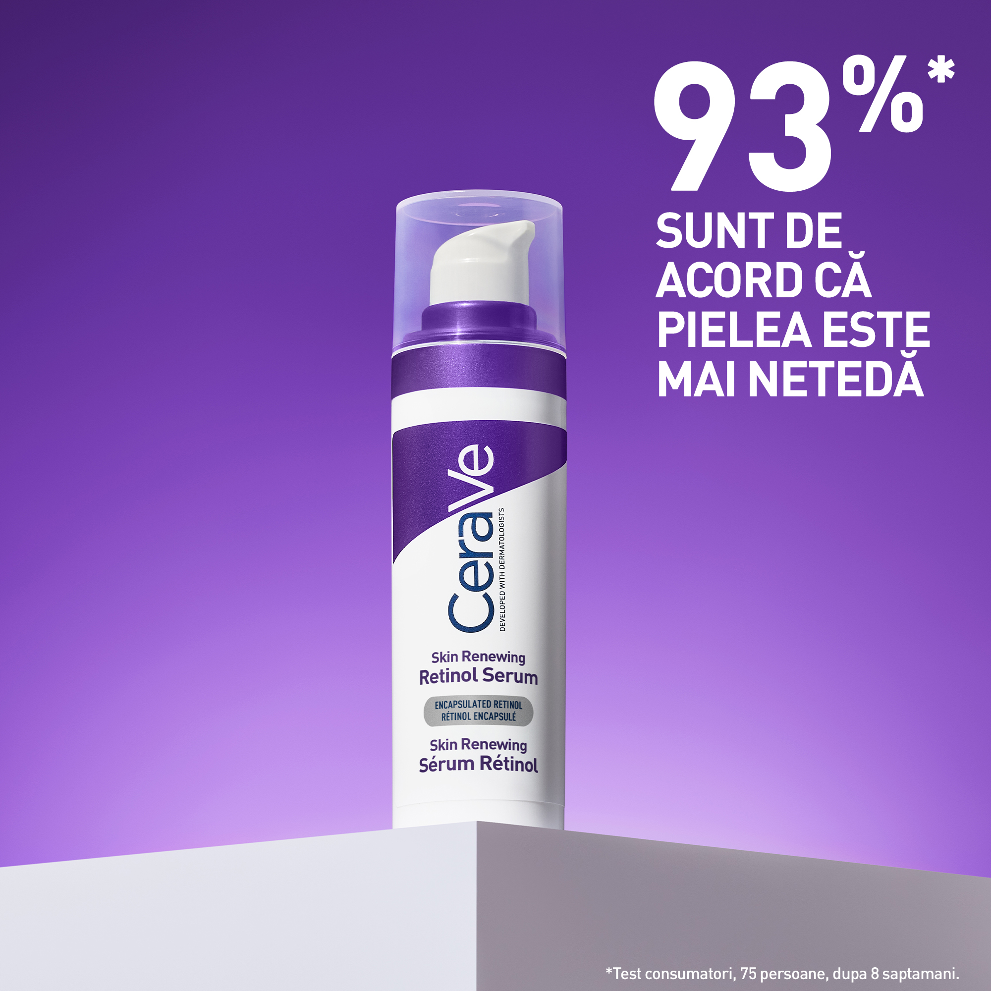 Dezvoltat împreună cu medicii dermatologi, Serumul cu Retinol Skin Renewing CeraVe hidratează, în timp ce reduce aspectul liniilor fine și al ridurilor de la nivelul pielii și ajută la restabilirea barierei cutanate.