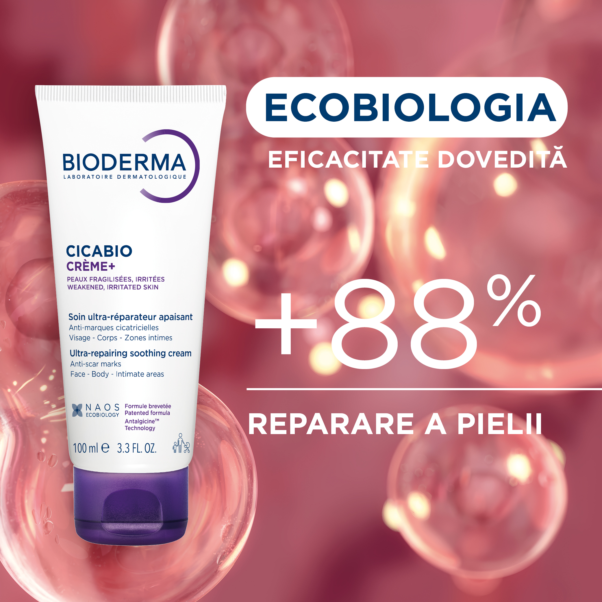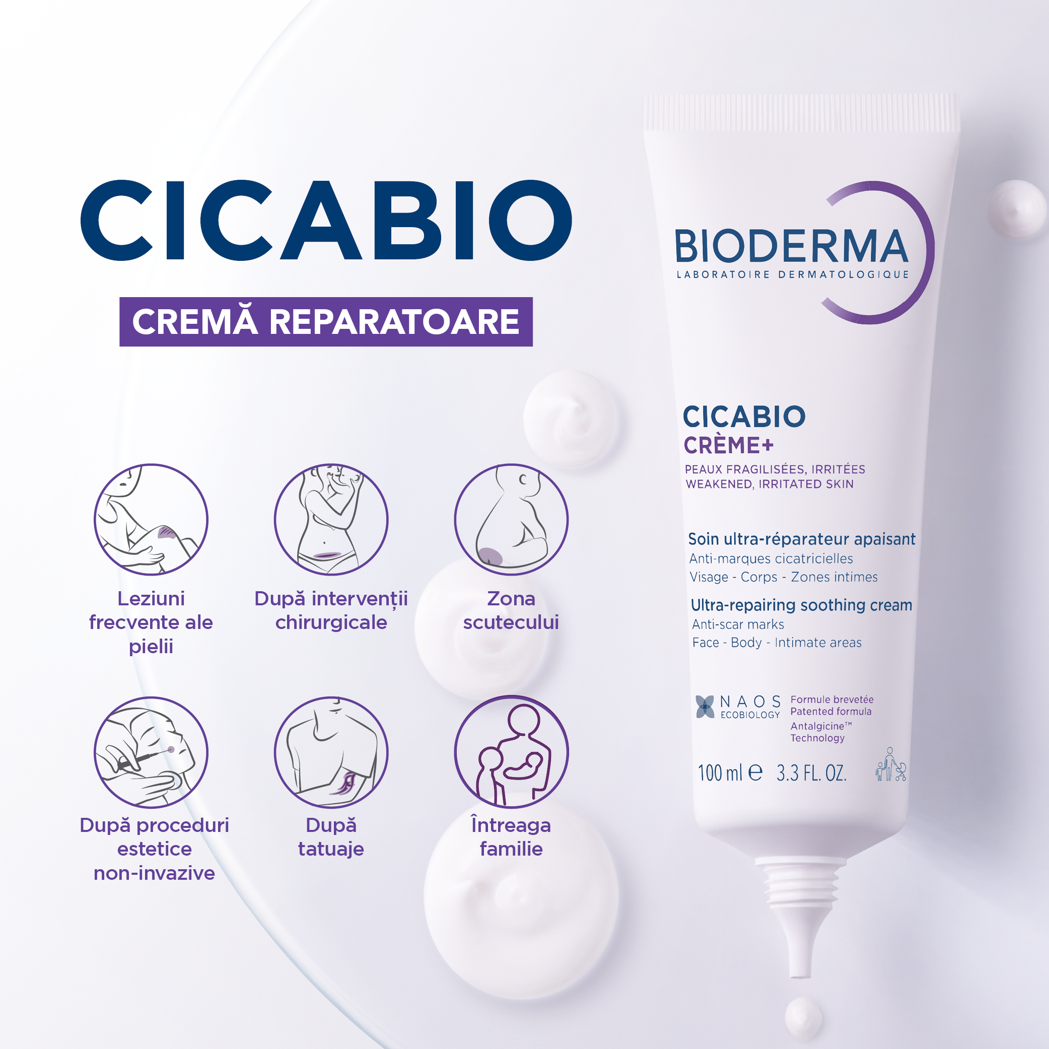 Cicabio Crema+ reparatoare pentru leziuni superficiale, arsuri si cicatrici, efect calmant si restructurant, pentru adulti, copii si bebelusi