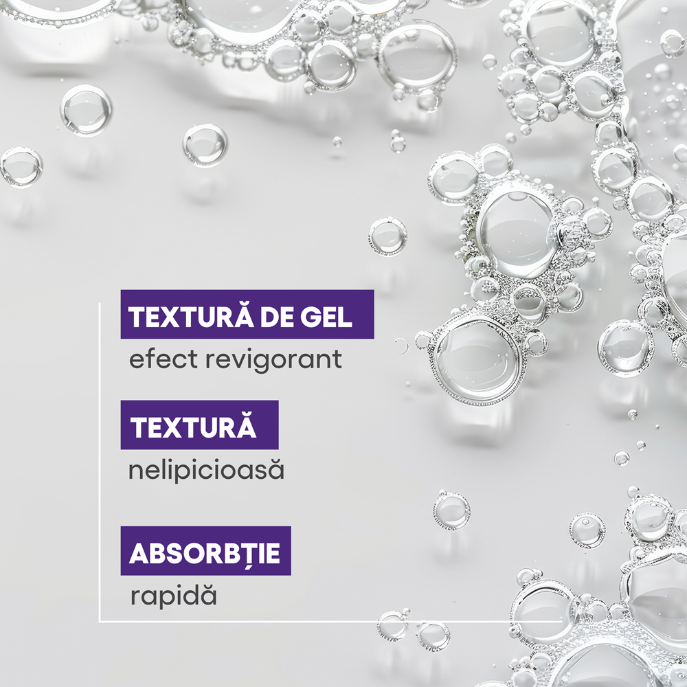 Textură proaspătă, non-lipicioasă, cu absorbție rapidă.