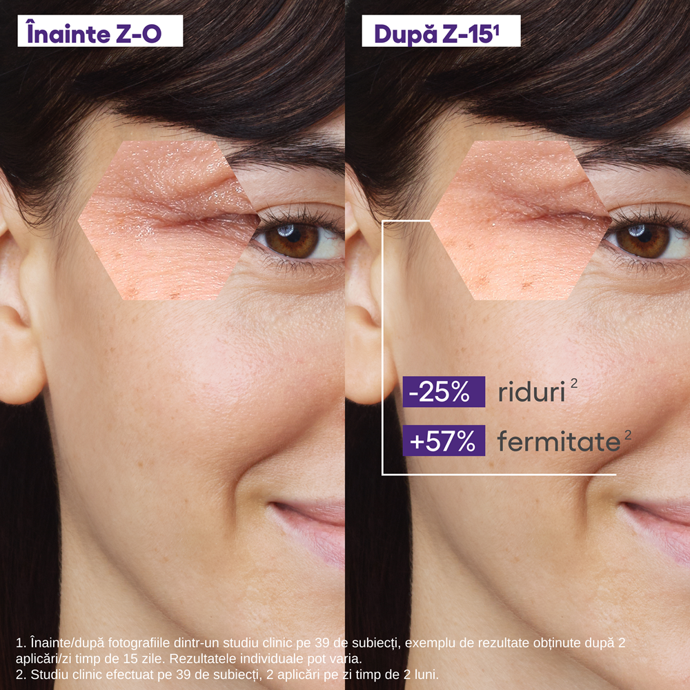 Contribuie la reducerea vizibilă a ridurilor și la creșterea elasticității pielii¹.