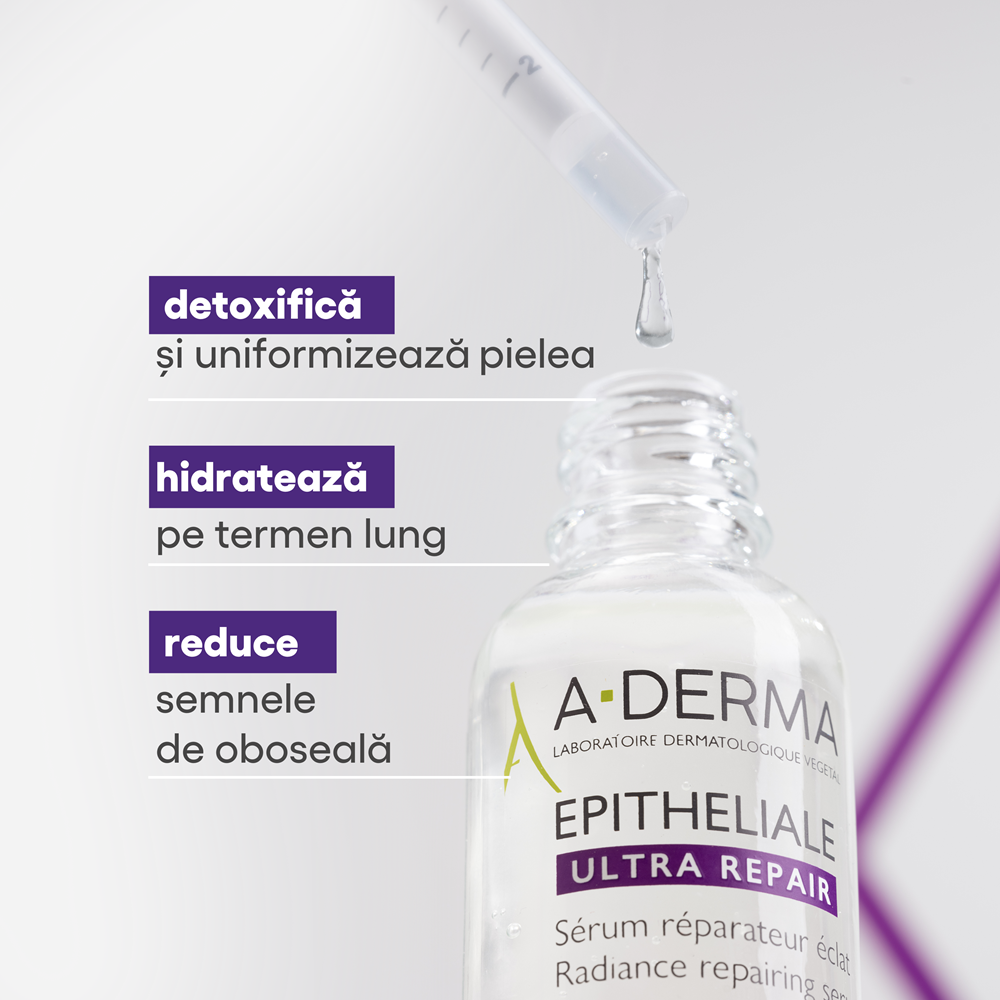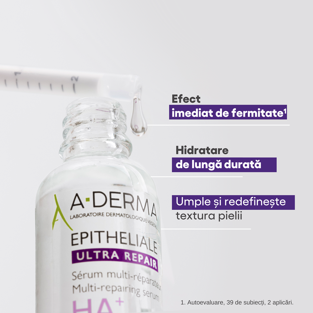 A-Derma Epitheliale Ultra Repair Serum HA+ este un ser concentrat, cu 99% ingrediente de origine naturală, formulat cu acid hialuronic și extract de ovăz Rhealba®, ce contribuie la repararea barierei cutanate, redând pielii fermitate, volum și un aspect mai neted.