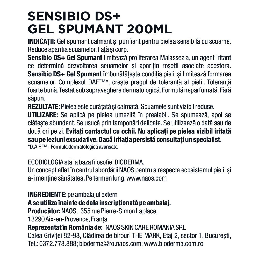 Ultima actualizare a informatiilor de prezentare pentru Gel spumant anti-roseata Sensibio DS+, 200 ml, Bioderma a fost efectuata la data de 16-04-2026.  |  Raporteaza Descriere Gresita