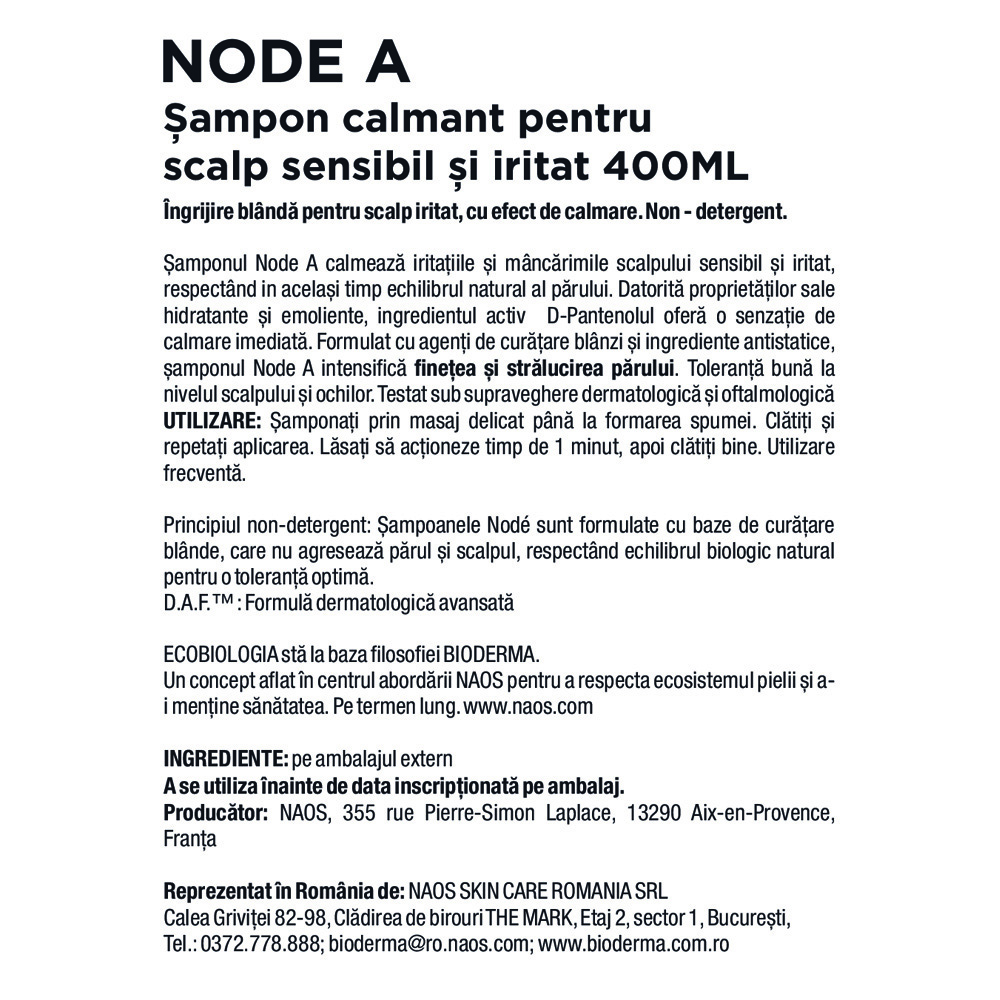 Șamponul Bioderma Nodé A este special formulat pentru curățarea delicată a scalpului sensibil și iritat. Ajută la calmarea senzațiilor de disconfort și mâncărime, respectând în același timp echilibrul natural al scalpului și al firului de păr.