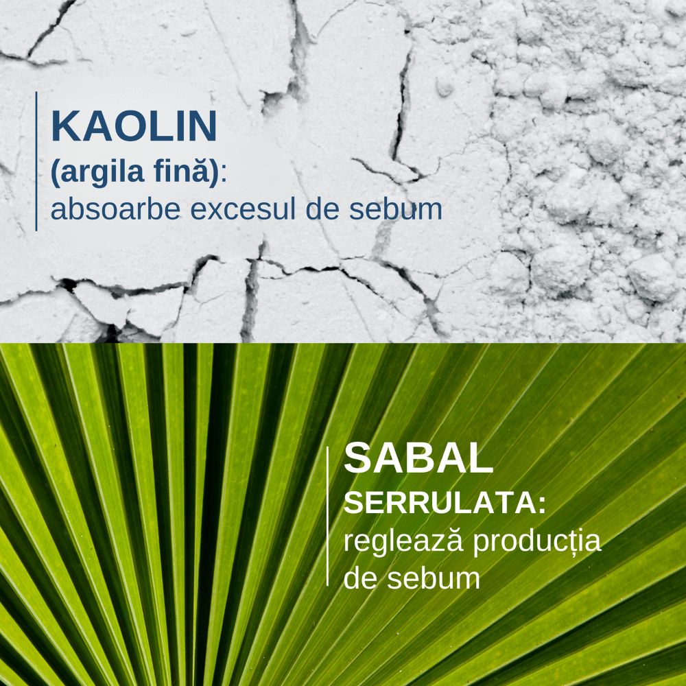 Formula sa unică, cu argilă fină (kaolin) și extract de sabal serrulata, reglează secreția de sebum și redă părului volum, suplețe și prospețime.