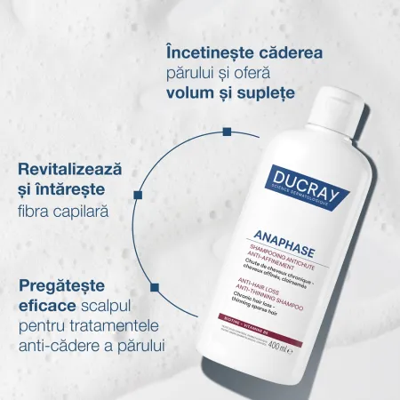 ANAPHASE+ este un șampon complementar anti-cădere a părului, special creat pentru a curăța eficient scalpul și a pregăti pielea pentru tratamentele împotriva căderii părului, optimizând astfel patrunderea substanțelor în piele. Formula sa biodegradabilă acționează în mod eficient pentru a întări fibra capilară și a încetini căderea părului. Acest șampon fortifiant curăță delicat părul și îi oferă un plus de volum.