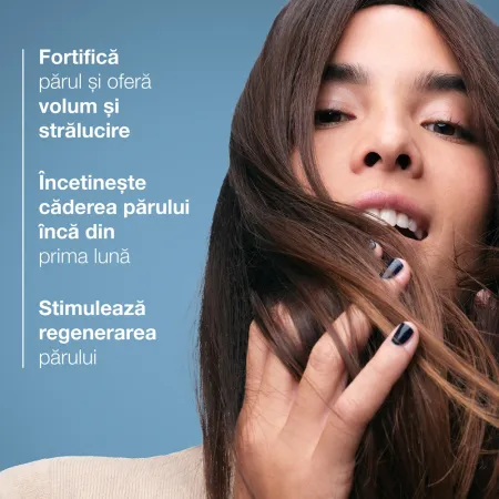 Formula sa biodegradabila actioneaza pentru a intari fibra capilara si astfel incetineste caderea parului. Contine Biotina, vitamina B5, extract de ruscus