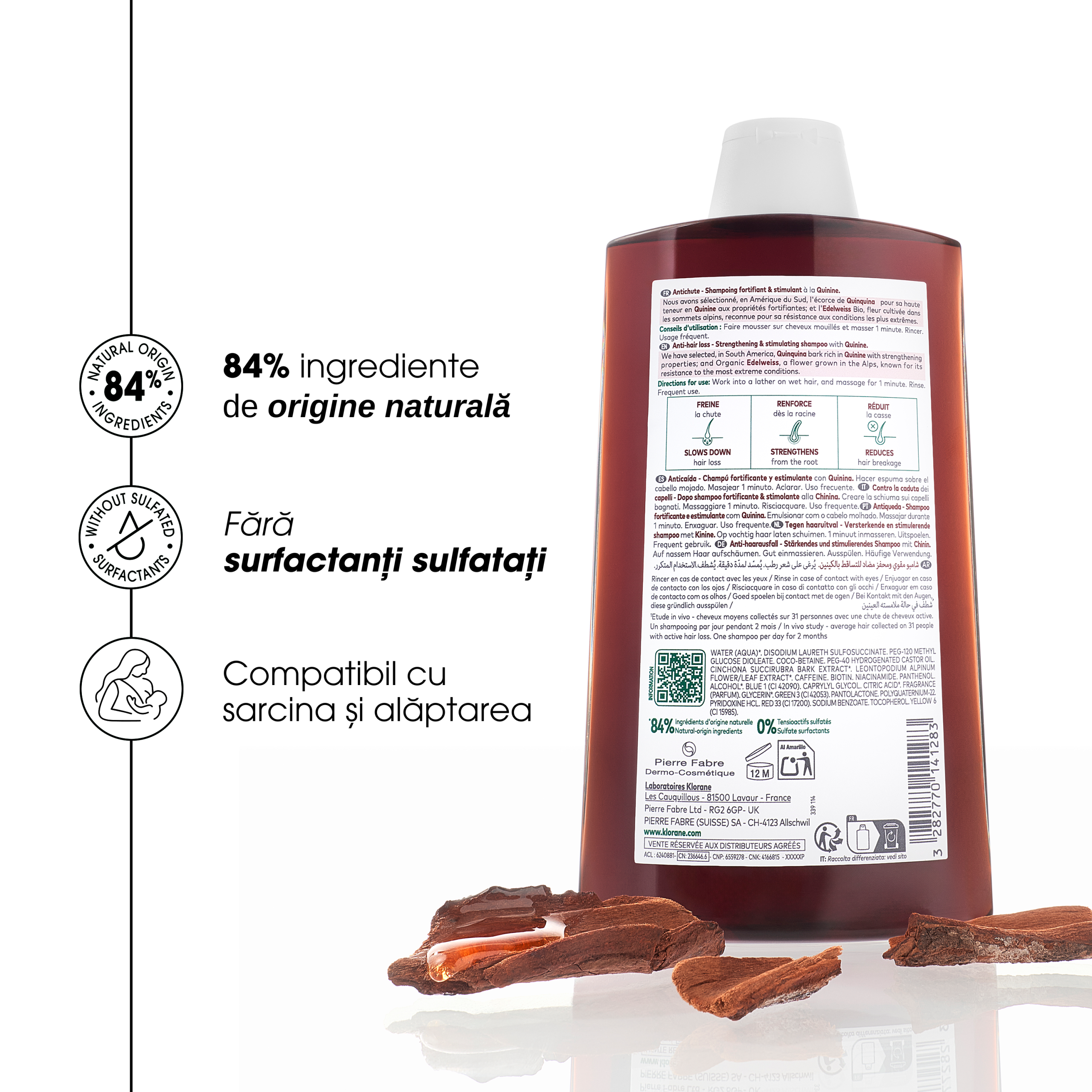 Se recomandă utilizarea împreună cu tratamentele complementare Klorane pentru rezultate vizibile.
