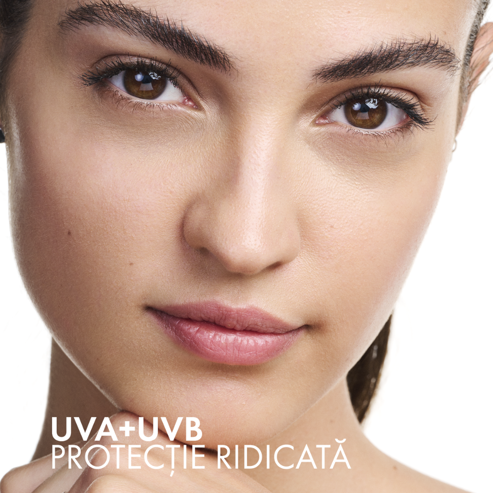 Mexoryl® XL+ minerale. Anti UVA și UVB. Fără parabeni. Hipoalergenic. Fără coloranți. Textură lejeră, anti-strălucire, special adaptată tenului mixt și gras în climatul umed. Protecție optimă datorită unui sistem de filtrare a radiațiilor UVA lung. Protejează AND-ul care formează idealul genetic și protejează pielea de arsuri solare, hiperpigmentări și îmbătrânire prematură.
