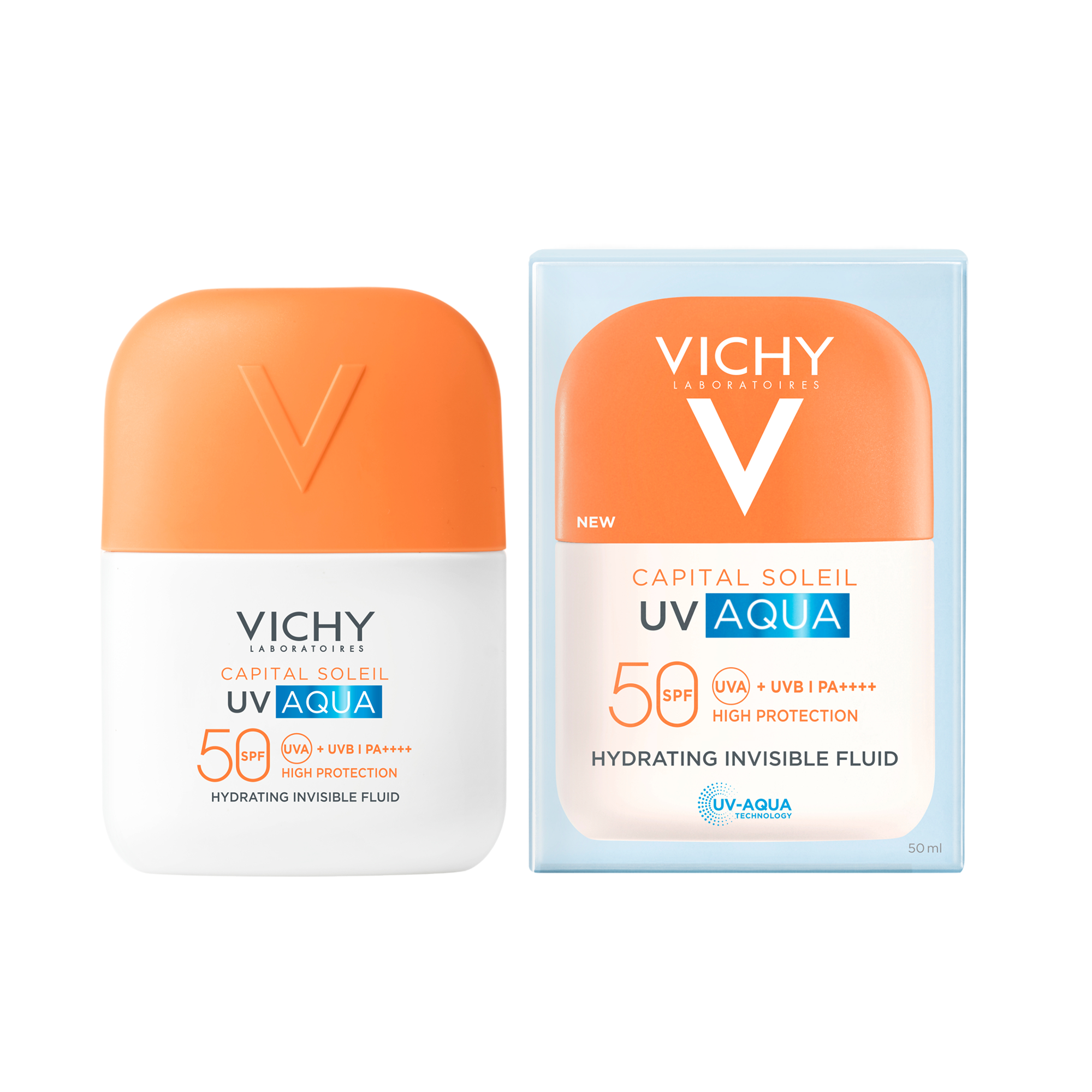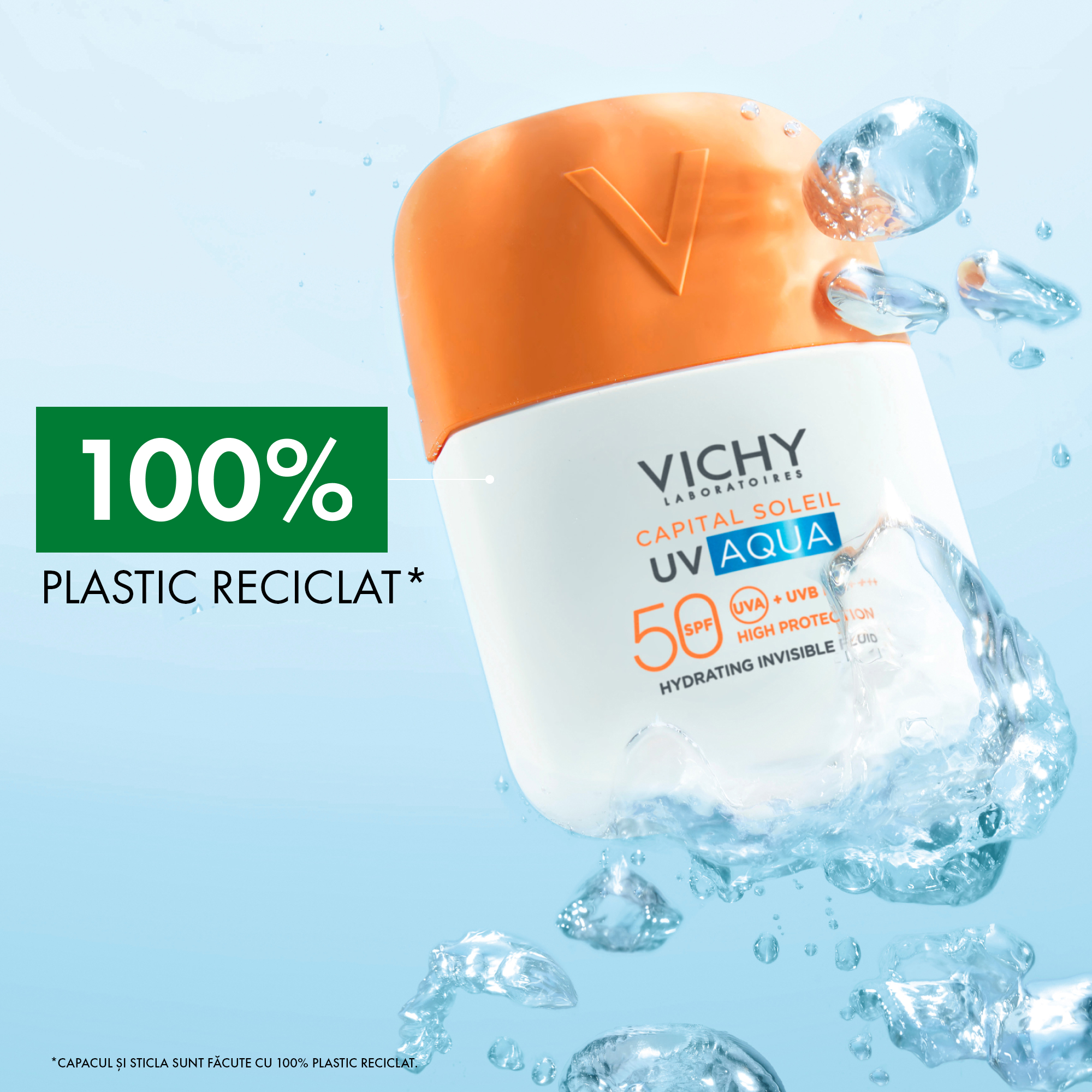 Noul fluid hidratant invizibil SPF 50 Capital Soleil UV AQUA, oferă o protecție ridicată împotriva razelor UVA și UVB. Cu o textură ultra-lejeră, asemănătoare apei, formula este invizibilă pe piele și se absoarbe instant1, în timp ce menține pielea hidratată timp de 24H2. Formulă hipoalergenică, testată sub control dermatologic & oftalmologic.