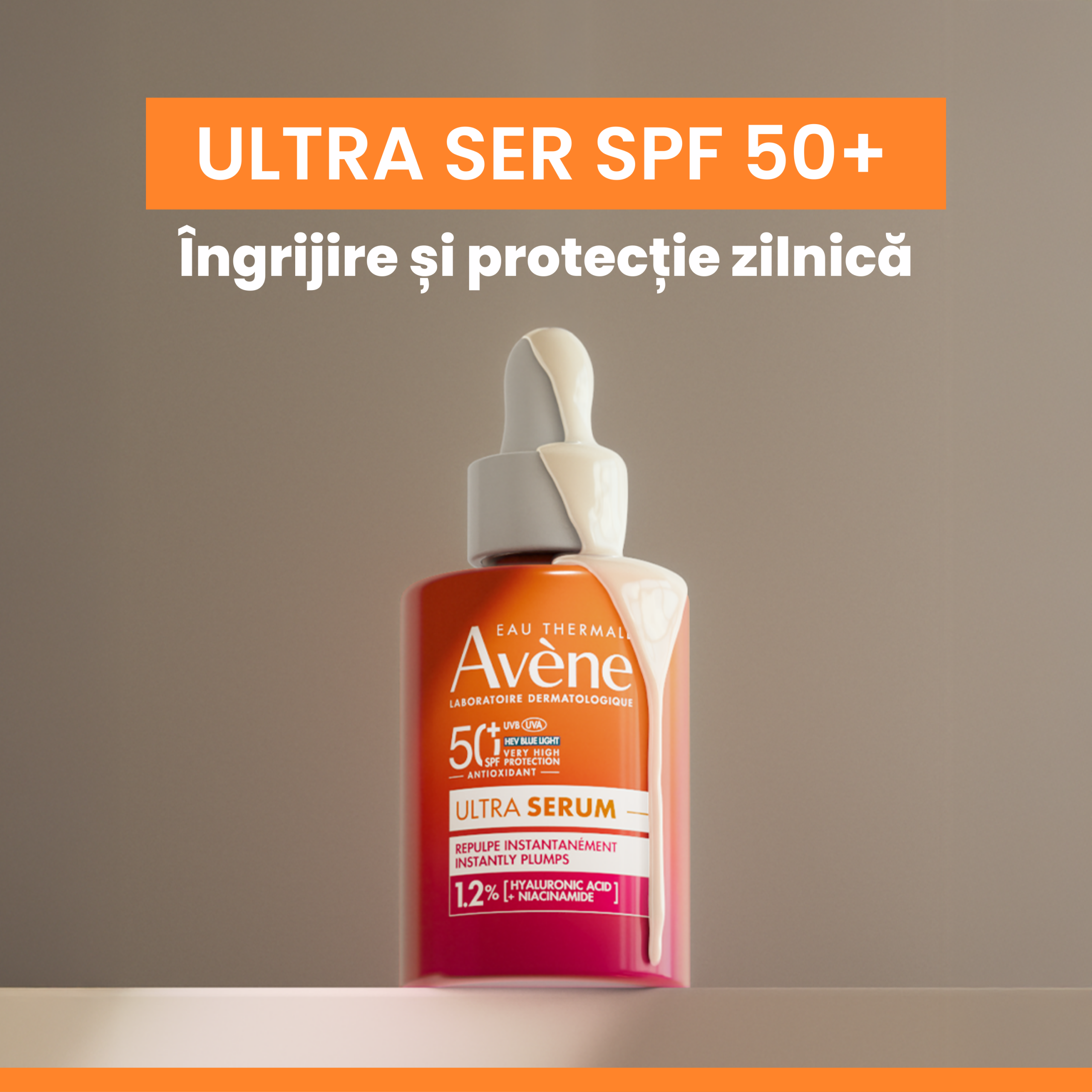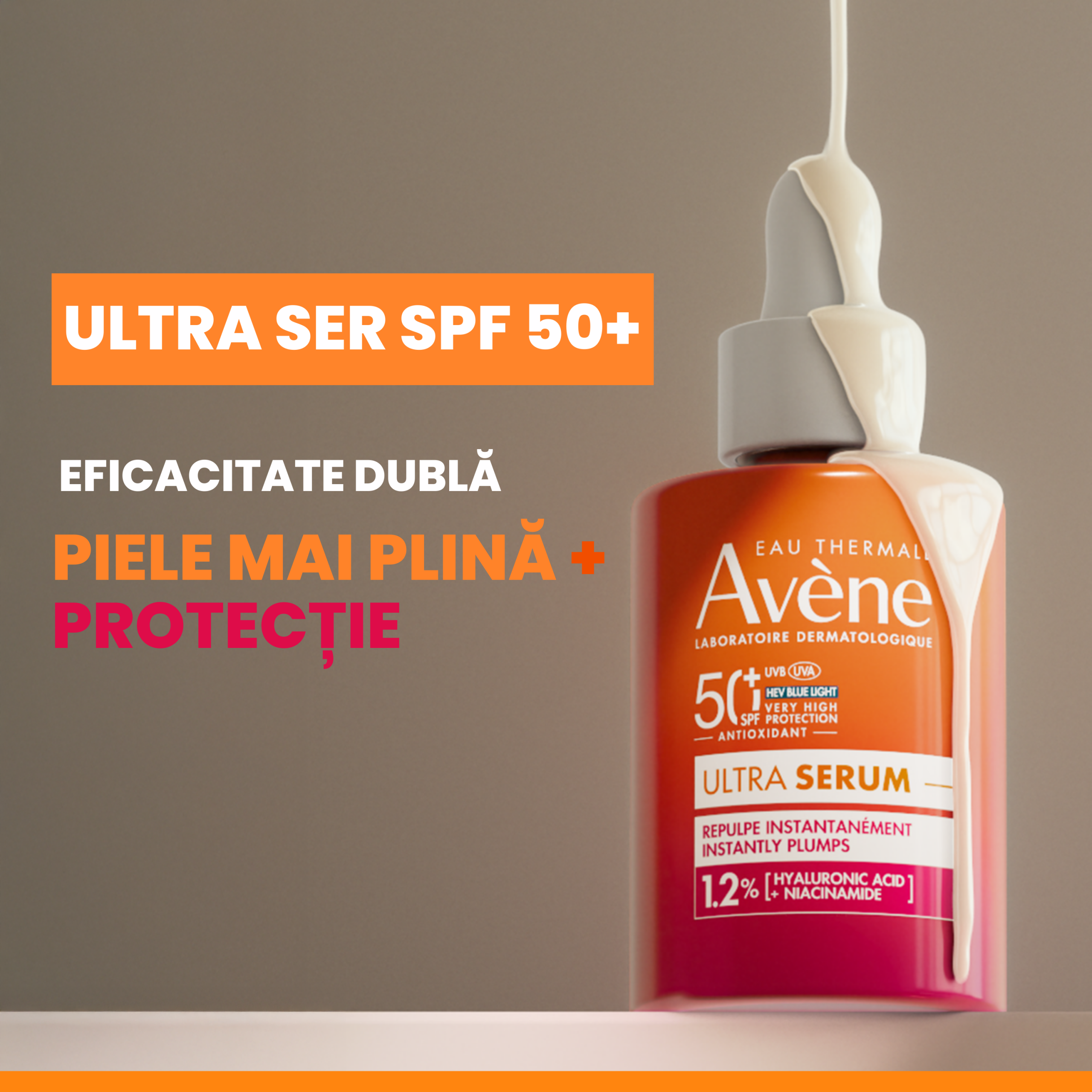 Ultra Serum SPF50+ cu efect de reumplere imediata, Avene este un ser fotoprotector cu protectie solara foarte ridicata, special conceput pentru pielea sensibila. Formula sa inovatoare combina eficienta unui produs de protectie solara SPF50+ cu beneficiile unui ser de ingrijire anti-imbatranire, oferind protectie avansata si efect vizibil de netezire si redensificare a pielii.