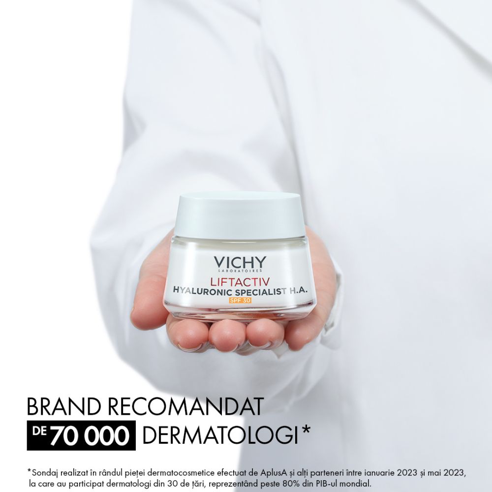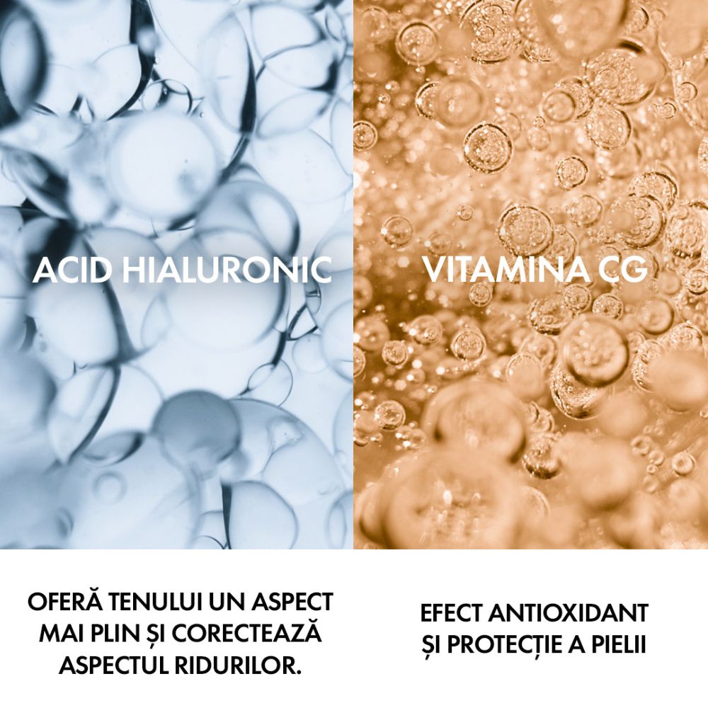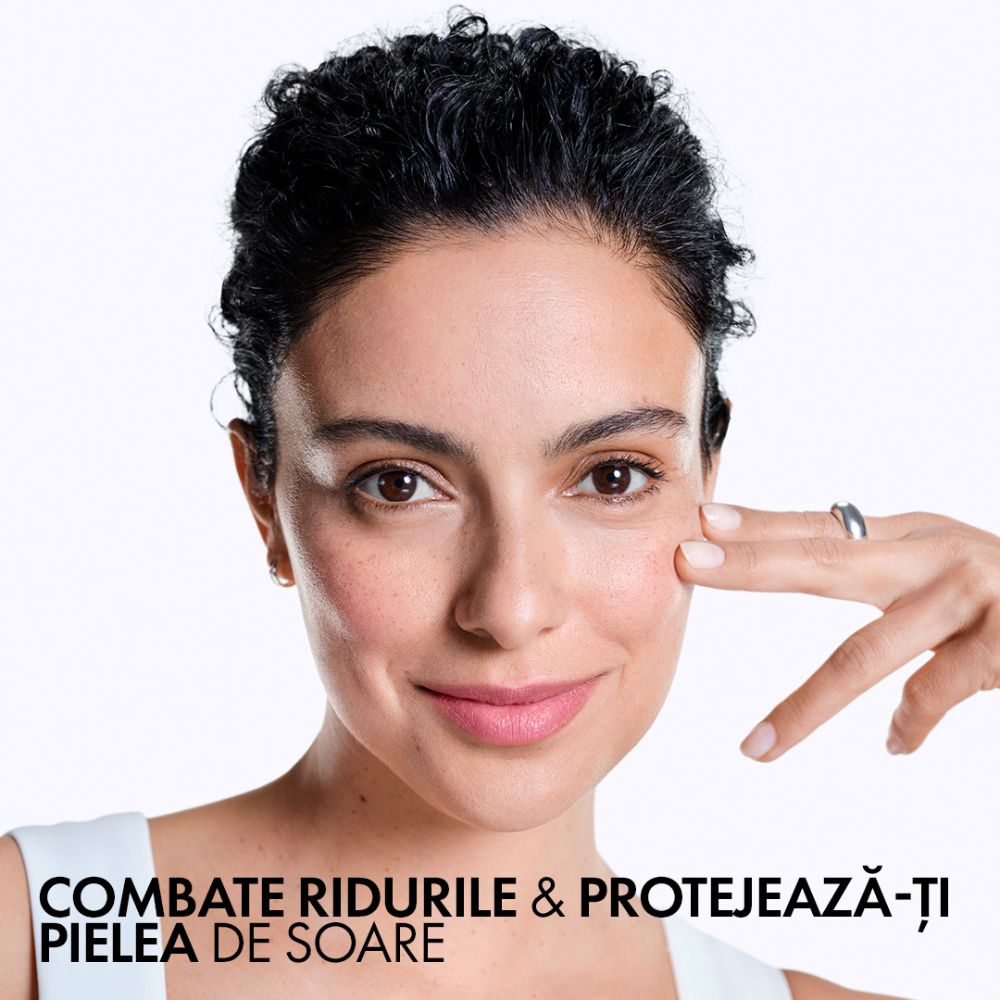 Crema de zi antirid cu protectie solara UVA/UVB cu spectru larg - SPF30. Tinteste ridurile profunde deja existente si previne aparitia noilor riduri datorate expunerii la soare. Gratie ingredientelor active dermatologice - acid hialuronic, niacinamide, apa vulcanica Vichy - ridurile sunt vizibil reduse si fermitatea pielii recapatata.