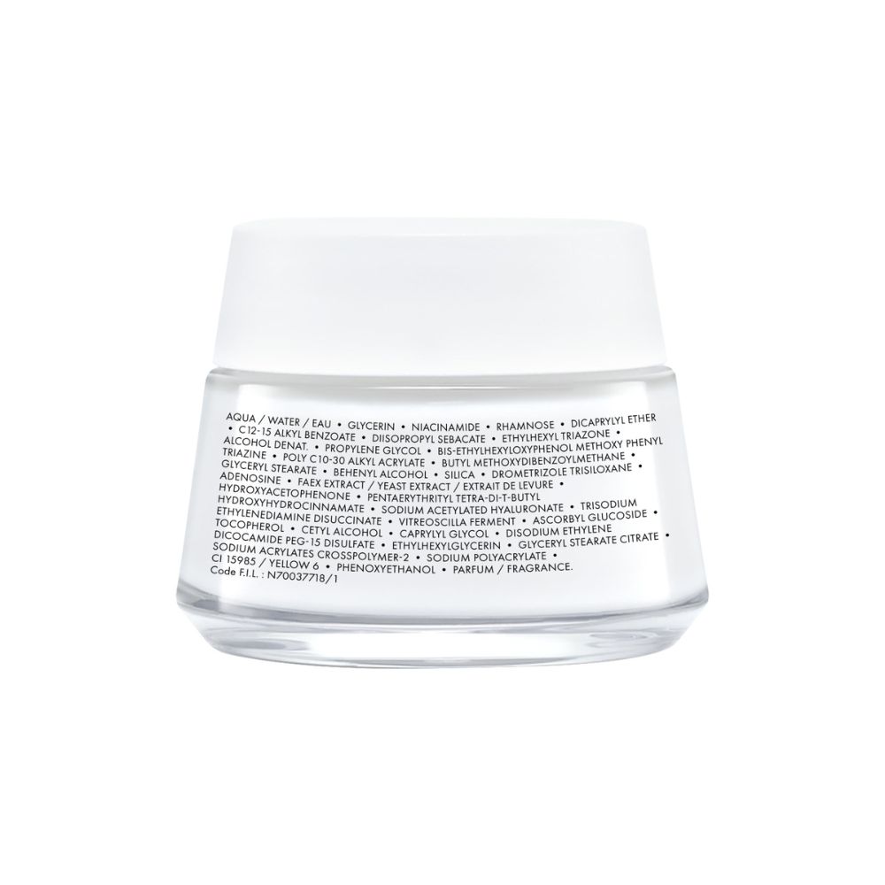 AQUA / WATER - GLYCERIN - OCTOCRYLENE - NIACINAMIDE - RHAMNOSE - ALCOHOL DENAT - HOMOSALATE - ETHYLHEXYL SALICYLATE - BUTYL METHOXYDIBENZOYLMETHANE - PROPYLENE GLYCOL - POLY C10-30 ALKYL ACRYLATE - ADENOSINE - FAEX EXTRACT / YEAST EXTRACT - PENTAERYTHRITYL TETRA-DI-T-BUTYL HYDROXYHYDROCINNAMATE - SODIUM ACETYLATED HYALURONATE - TRISODIUM ETHYLENEDIAMINE DISUCCINATE - TOCOPHEROL - CETYL ALCOHOL - BEHENYL ALCOHOL - CAPRYLYL GLYCOL - DISODIUM ETHYLENE DICOCAMIDE PEG-15 DISULFATE - ETHYLHEXYLGLYCERIN - GLYCERYL STEARATE - GLYCERYL STEARATE CITRATE - SILICA - SODIUM ACRYLATES CROSSPOLYMER-2 - SODIUM POLYACRYLATE - PHENOXYETHANOL - PARFUM / FRAGRANCE
