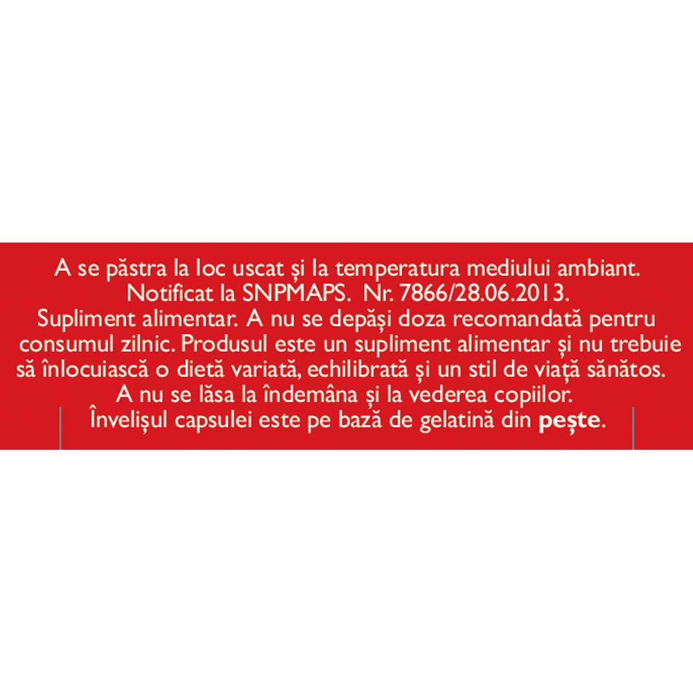Produsul este un supliment alimentar și nu trebuie să înlocuiască o dietă variată și echilibrată