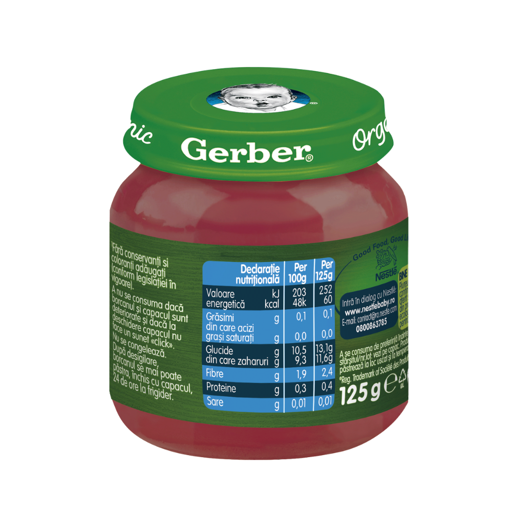 Gerber oferă o gustare sănătoasă pentru copiii tăi cu o combinație de mar si sfecla rosie. Această gustare este fără zahar adăugată (contine doar zaharuri prezente in mod natural, provenite din ingrediente) și fără conservanți sau coloranți artificiali, astfel încât copilul tău să mănânce ingrediente naturale și sănătoase. De asemenea, acest produs nu conține gluten, ceea ce îl face potrivit pentru copiii cu alergii la gluten. Este realizat din ingrediente ecologice și atent selectate, cu grijă pentru mediu.