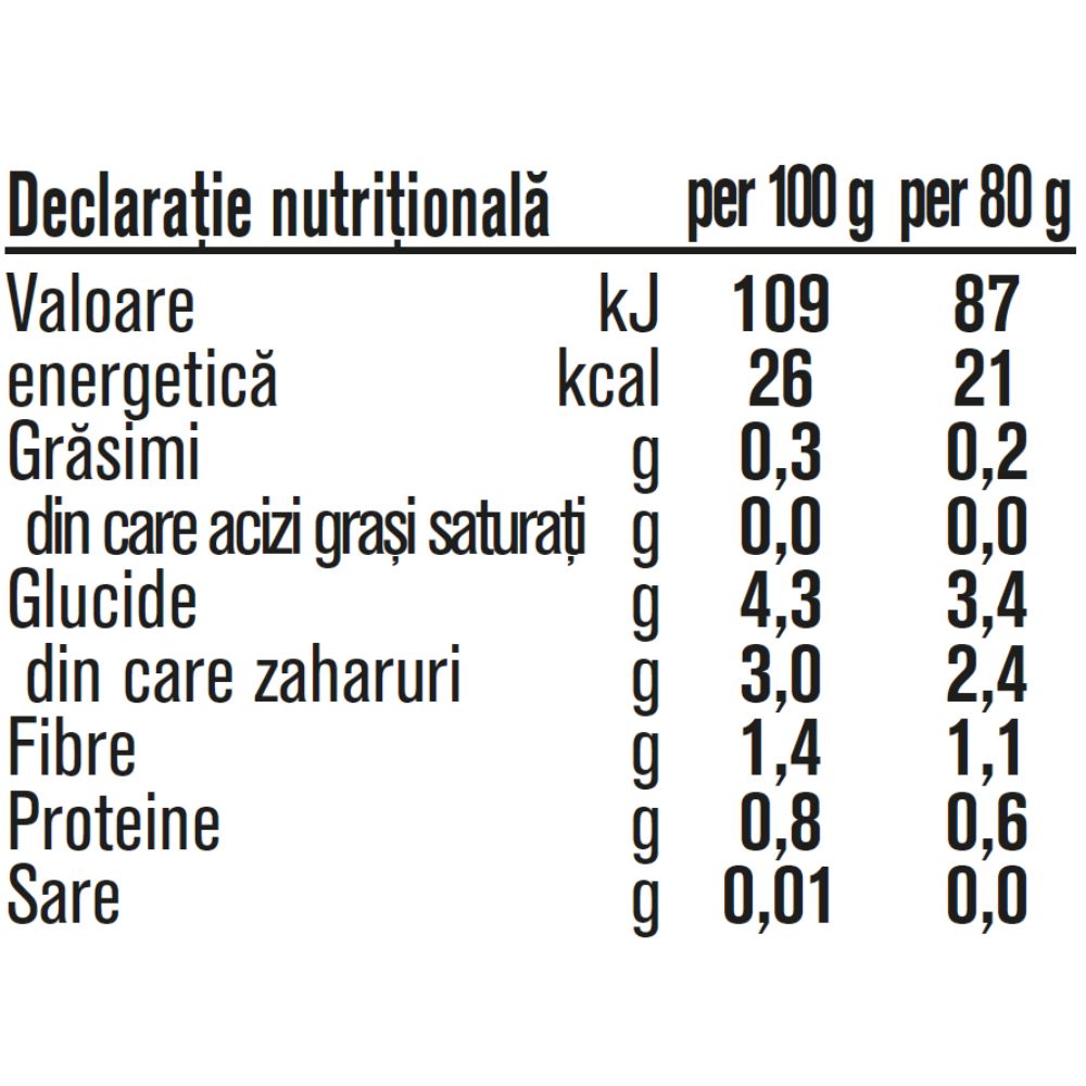 După desigilare, produsul se păstrează la frigider, închis cu capacul, și se consumă în maximum 24 de ore.