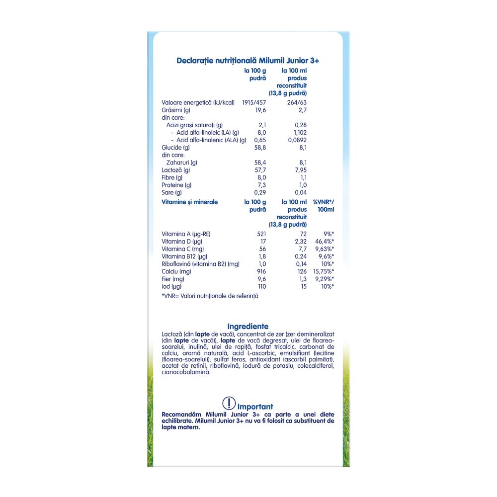 Milumi Junior 3+ PRECINUTRI conţine: