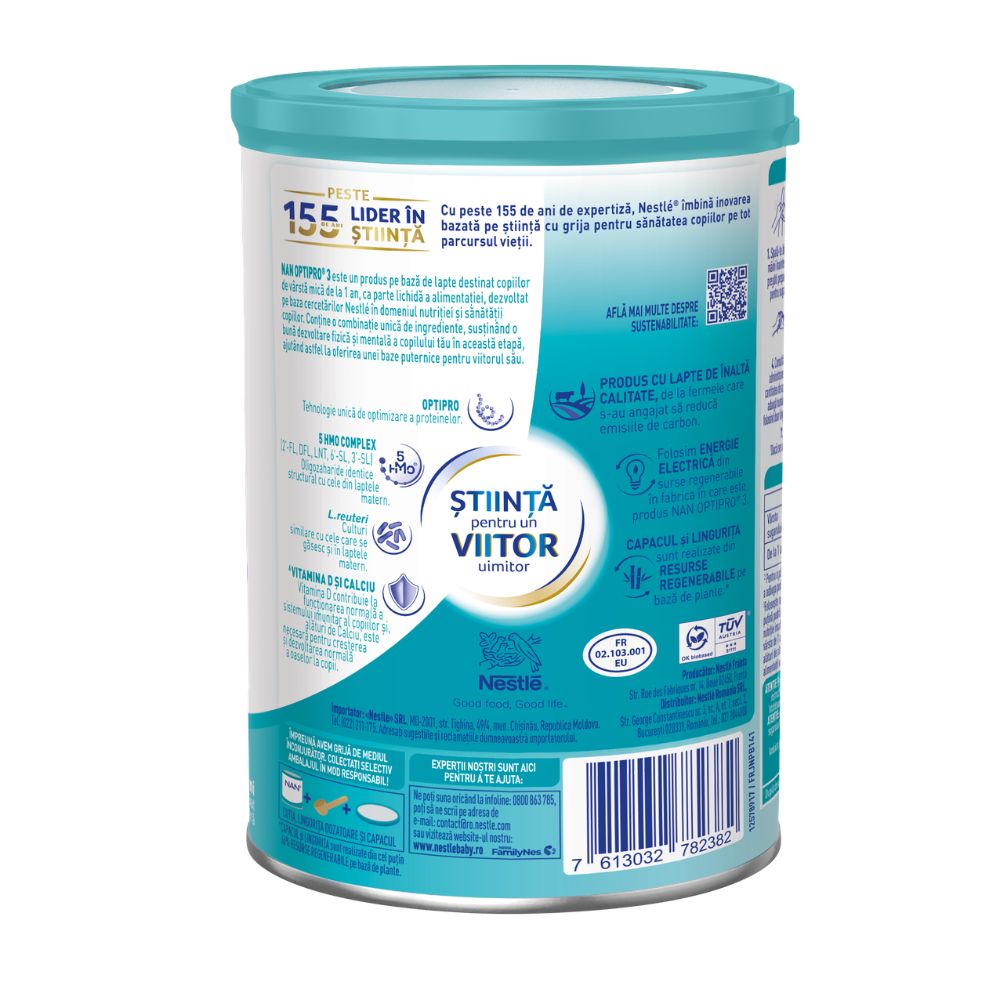 NAN OPTIPRO 3 HMO este un produs pe baza de lapte destinat copiilor de vârstă mică de la 1 an, ca parte lichidă a alimentației, dezvoltat pe baza cercetărilor Nestlé în domeniul nutriției și sănătății copiilor., Cu peste 155 de ani de expertiza, Nestlé combina inovarea bazata pe stiinta in domeniul sanatatii copiilor pe tot parcursul vietii si promisiunea de a avea grija de planeta, pentru un viitor uimitor.