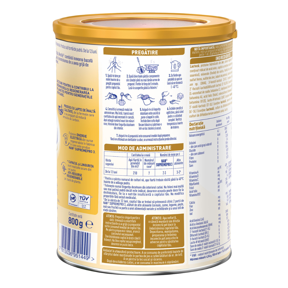 NAN® SUPREMEpro 3 nu trebuie folosit ca înlocuitor al laptelui matern în primele 6 luni de viață.