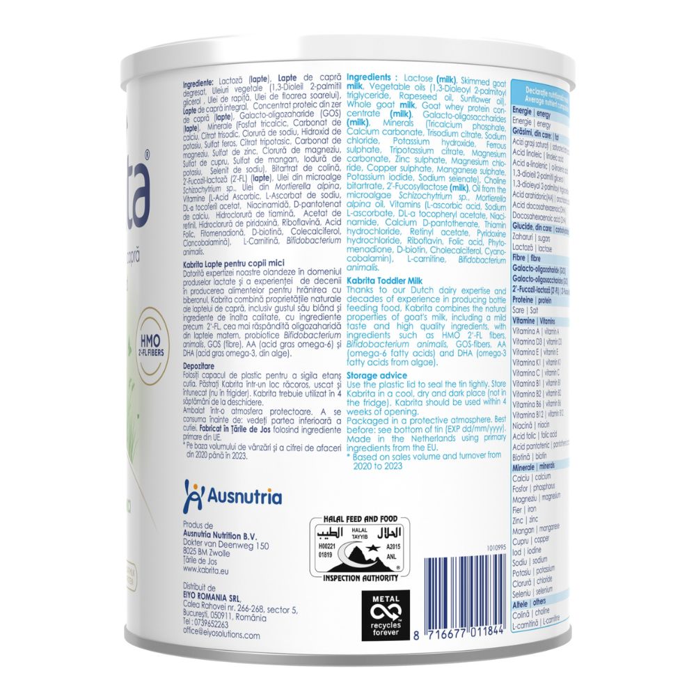Kabrita nu conține ulei de palmier, maltodextrină, sirop de porumb, pesticide, metale grele și organisme modificate genetic.