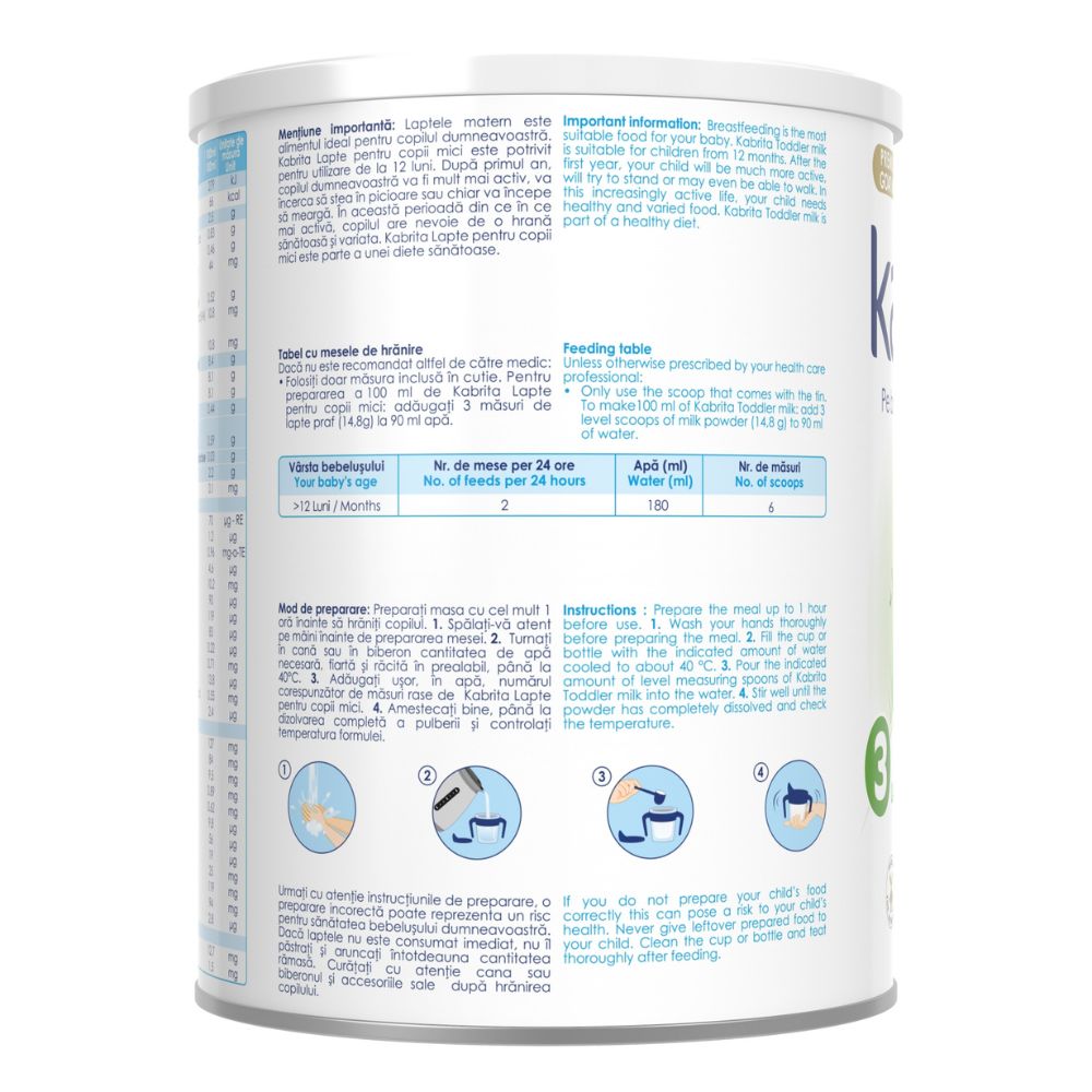 Kabrita 3 Lapte pentru copii mici este potrivit pentru utilizare de la 12 luni până la 24 luni.